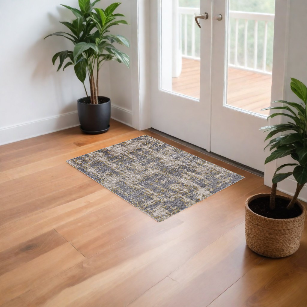 Add great coloration and comfortable texture to your space with this 2-foot x 3-foot gray and gold abstract area rug. Ideal for spaces with kids and pets, this rug is stain resistant to help repel dirt and spilled liquids. Built to last, this rug crafted from polypropylene fibers is known for its durability and long lasting appeal. Rugs are a great way to showcase your style, hide imperfections, warm your home and reduce noise. 20.00-inch h x 34.00-inch w x 0.39-inch d.