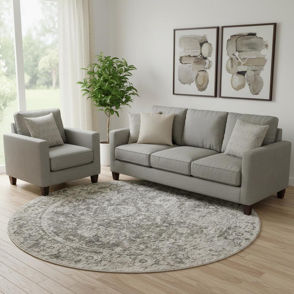 Add great coloration and comfortable texture to your space with this 8' ivory and gray round abstract hand woven area rug. This geometric round shaped rug features a abstract pattern in ivory and gray that combines a good looking print with a unique and updated shape. The mix of shape, color, and design gives this rug refreshing visual interest. Crafted by skilled artisans, this hand woven rug is genuine and unique. No two will be exactly alike. Place this area rug against a hardwood or tile floor and it will enliven your living space with style and sophistication. 0.13" H x 96" W x 96" D