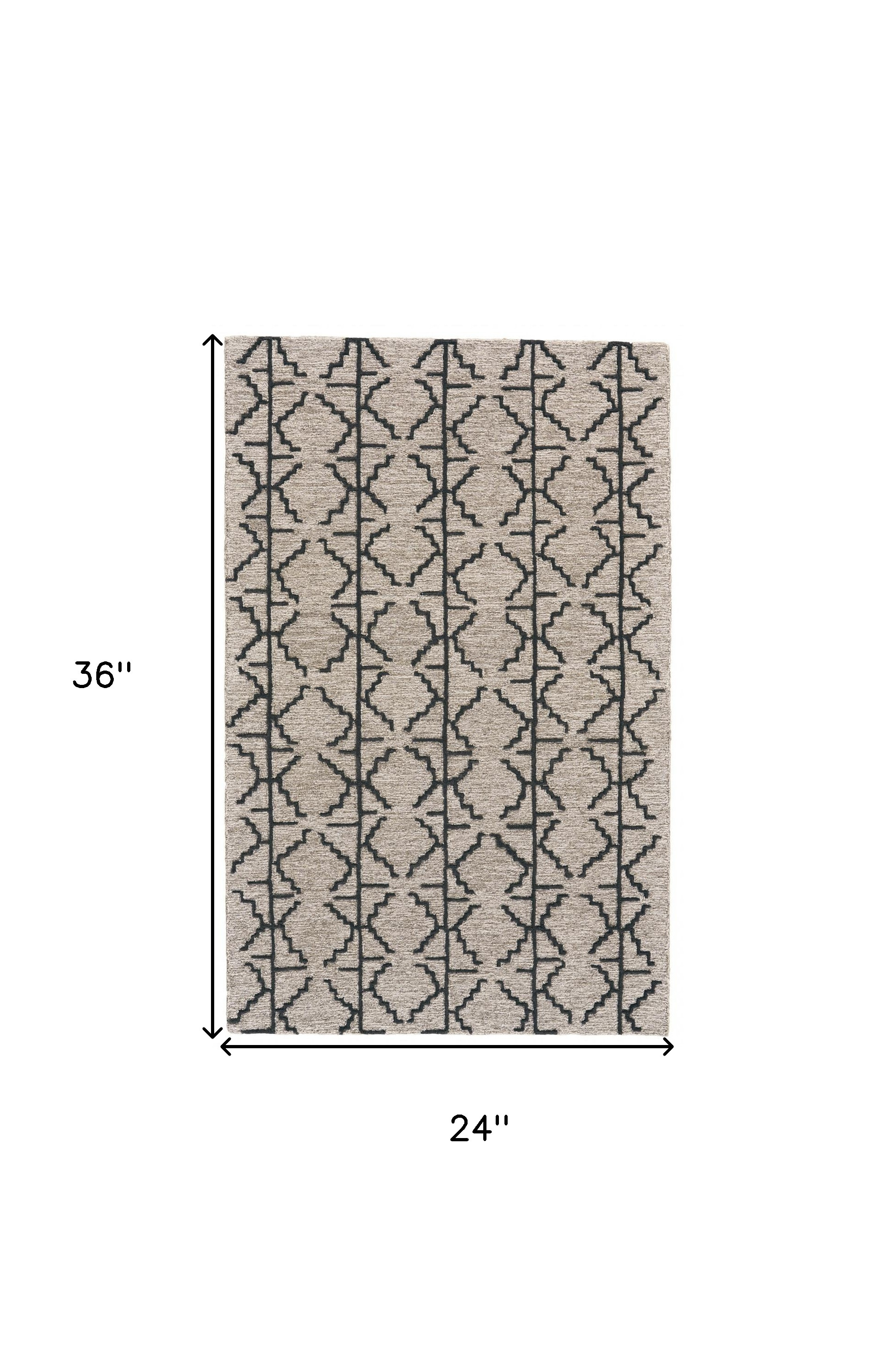 This 2-foot x 3-foot black and taupe wool geometric hand tufted area rug, is a great way to add warmth to a room. Ideal for spaces with kids and pets, this rug is stain resistant to help repel dirt and spilled liquids. Crafted by skilled artisans, this hand tufted rug is genuine and unique. No two will be exactly alike. Rugs are a great way to showcase your style, hide imperfections, warm your home and reduce noise. 24.00-inch h x 36.00-inch w x 0.31-inch d.