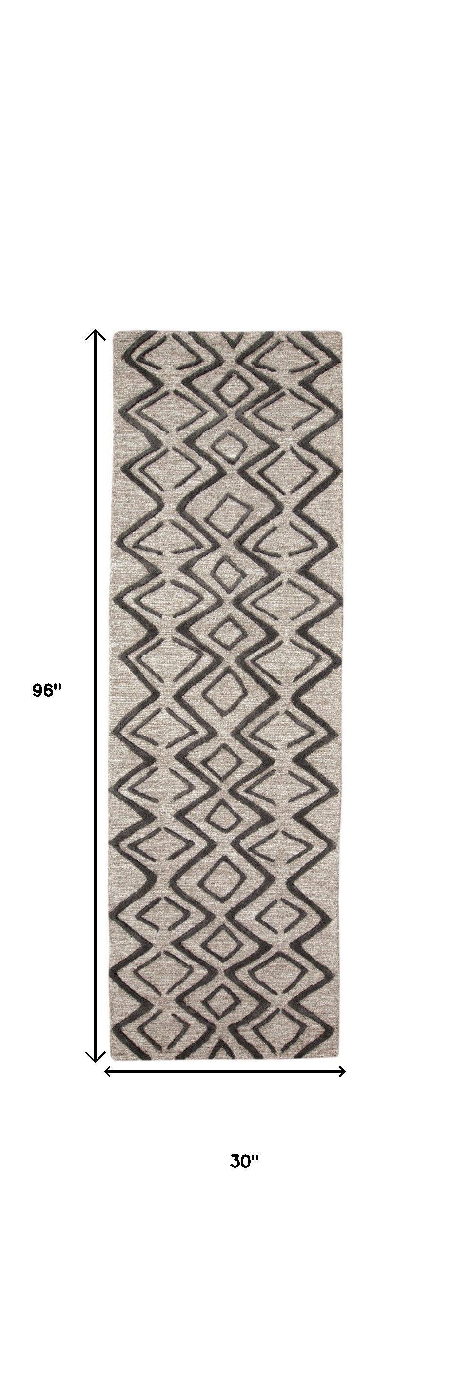 geometric hand tufted runner rug, hand tufted runner rug, tufted runner rug, taupe gray geometric hand tufted, black taupe gray |