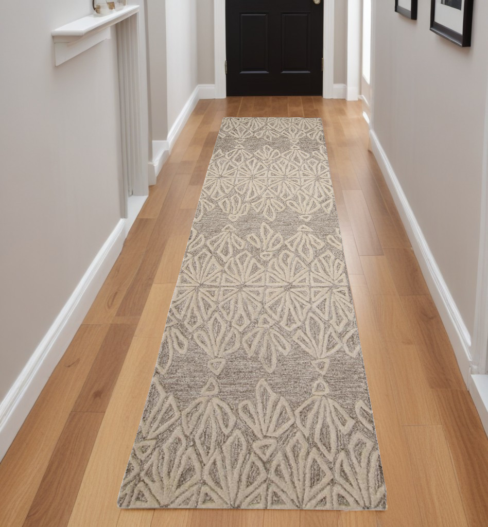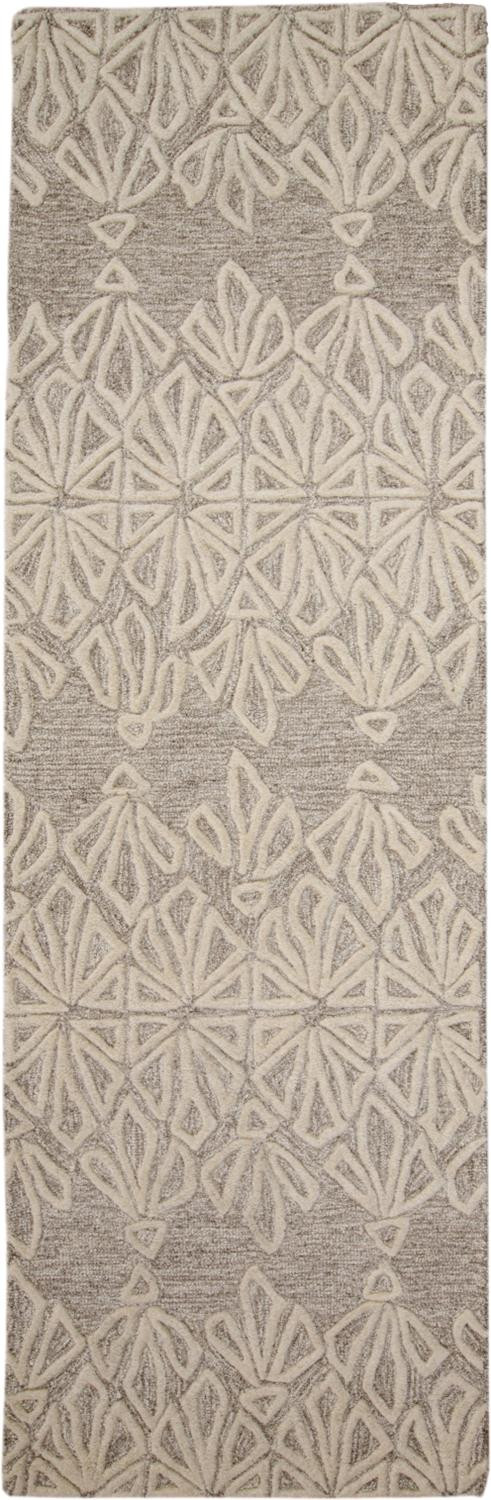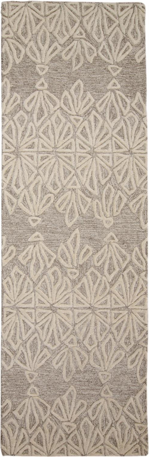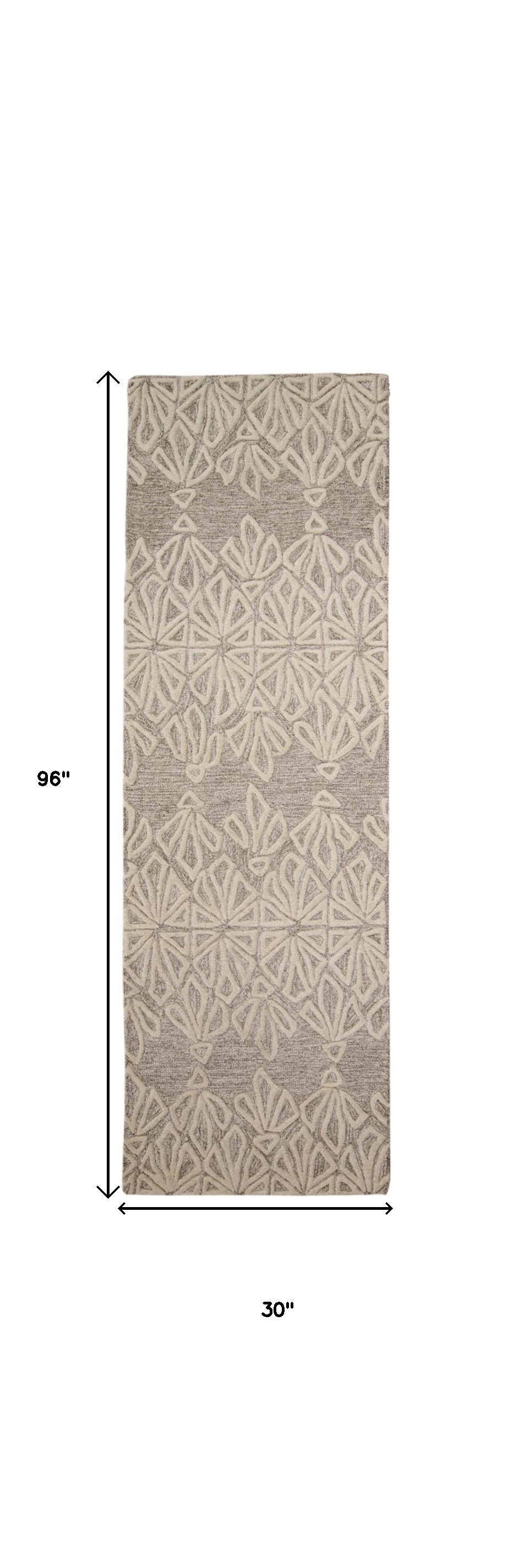 8' Ivory and Tan Geometric Hand Tufted Runner Rug