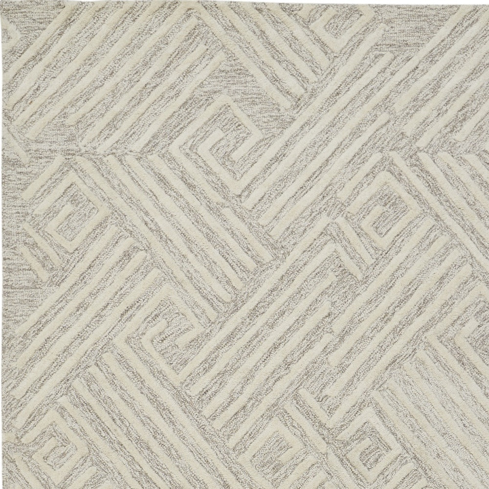 Set an inviting tone in your space with this 4' x 6' tan and ivory wool geometric tufted handmade stain resistant area rug. This rectangle shaped rug features a geometric design in tan and ivory to give it visual interest. A classic shape marries with good looking design for your space Ideal for spaces with kids and pets, this rug is stain resistant to help repel stains and spilled liquids. Place this area rug against a hardwood or tile floor and it will enliven your living space with style and sophistication. 0.31" H x 42" W x 66" D