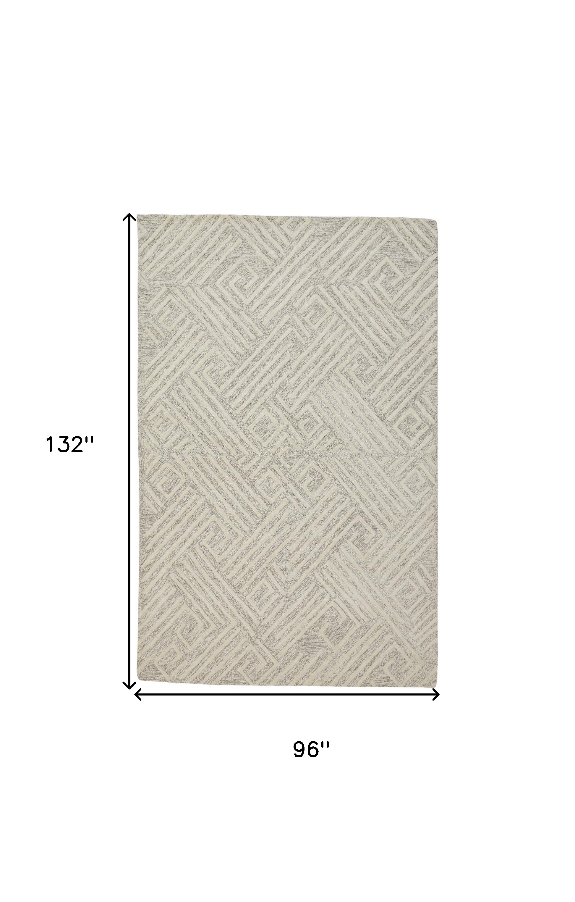 Set an inviting tone in your space with this 8' x 11' tan and ivory wool geometric tufted handmade stain resistant area rug. This rectangle shaped rug features a geometric design in tan and ivory to give it visual interest. A classic shape marries with good looking design for your space Ideal for spaces with kids and pets, this rug is stain resistant to help repel stains and spilled liquids. Place this area rug against a hardwood or tile floor and it will enliven your living space with style and sophistication. 0.31" H x 96" W x 132" D