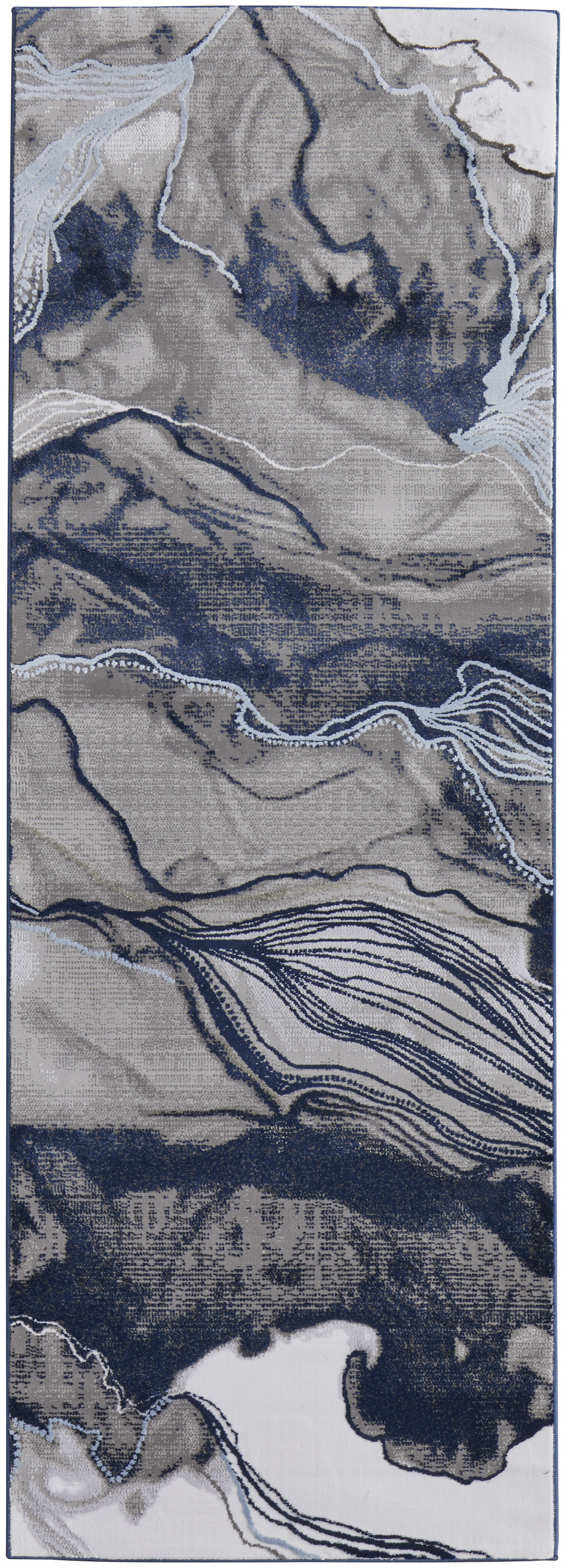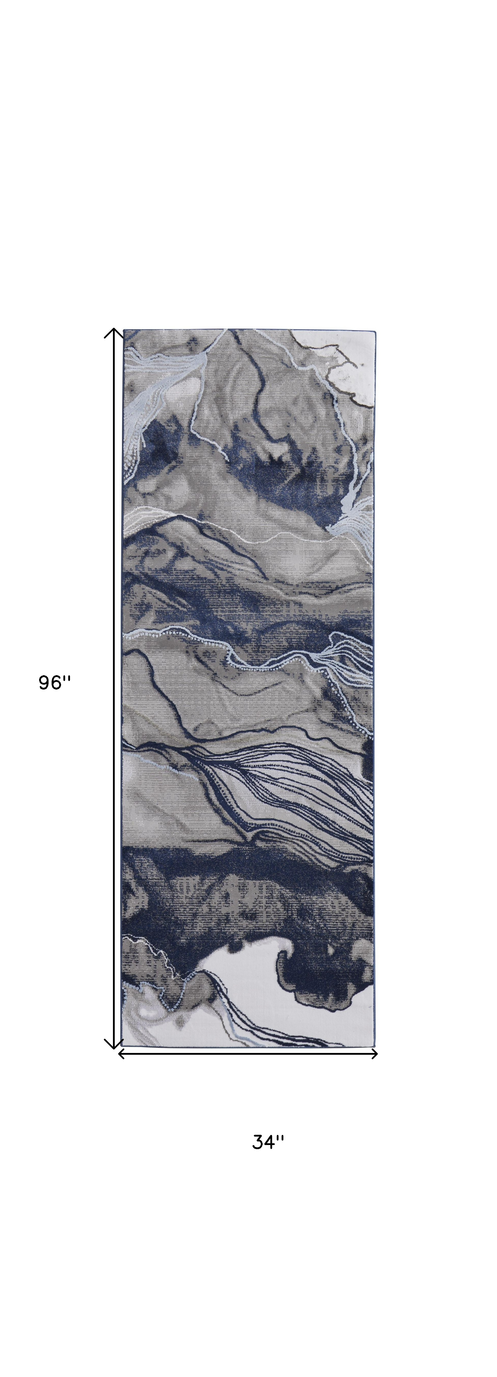 This 8' blue gray and ivory abstract power loom runner rug, is a great way to add warmth to a room. This runner shaped rug features a abstract design in blue gray and ivory to give it visual interest. A classic shape marries with good looking design for your space Made in Turkey, this rug offers high quality combined with good looking designer sensibilities. Ideal for spaces with kids and pets, this rug is stain resistant to help repel stains and spilled liquids. Place this area rug against a hardwood or tile floor and it will enliven your living space with style and sophistication. 0.39" H x 34" W x 96" D