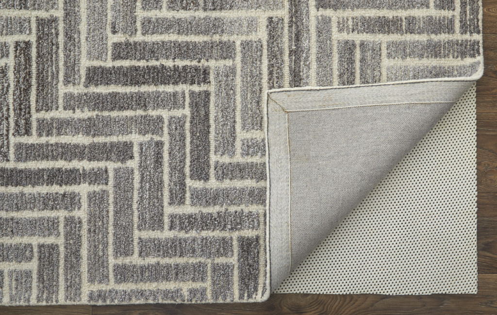 geometric tufted handmade area rug, tufted handmade area rug, handmade area rug, wool geometric tufted handmade area, 10' X 14' taupe gray tan wool |