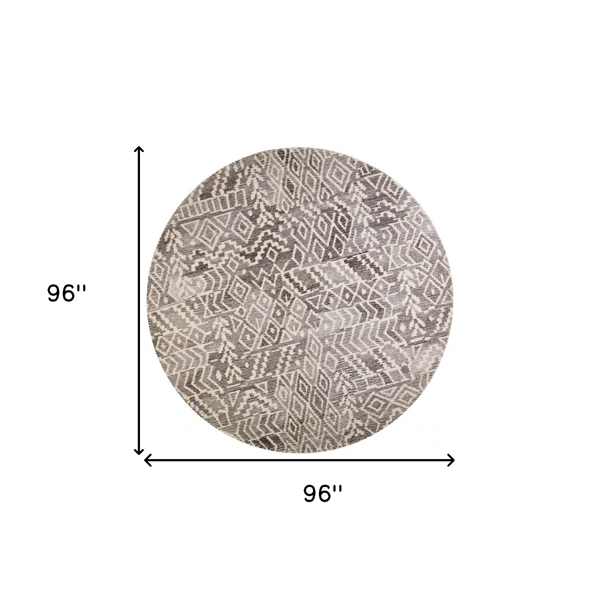 Set an inviting tone in your space with this 8-foot gray and white round wool abstract hand tufted area rug. This geometric round shaped rug features a abstract pattern in gray and white that combines a good looking print with a unique and updated shape. The mix of shape, color, and design gives this rug refreshing visual interest. Area rugs help to give warmth and sense of home to your space. 96-inch H x 96-inch W x 0.55-inch D