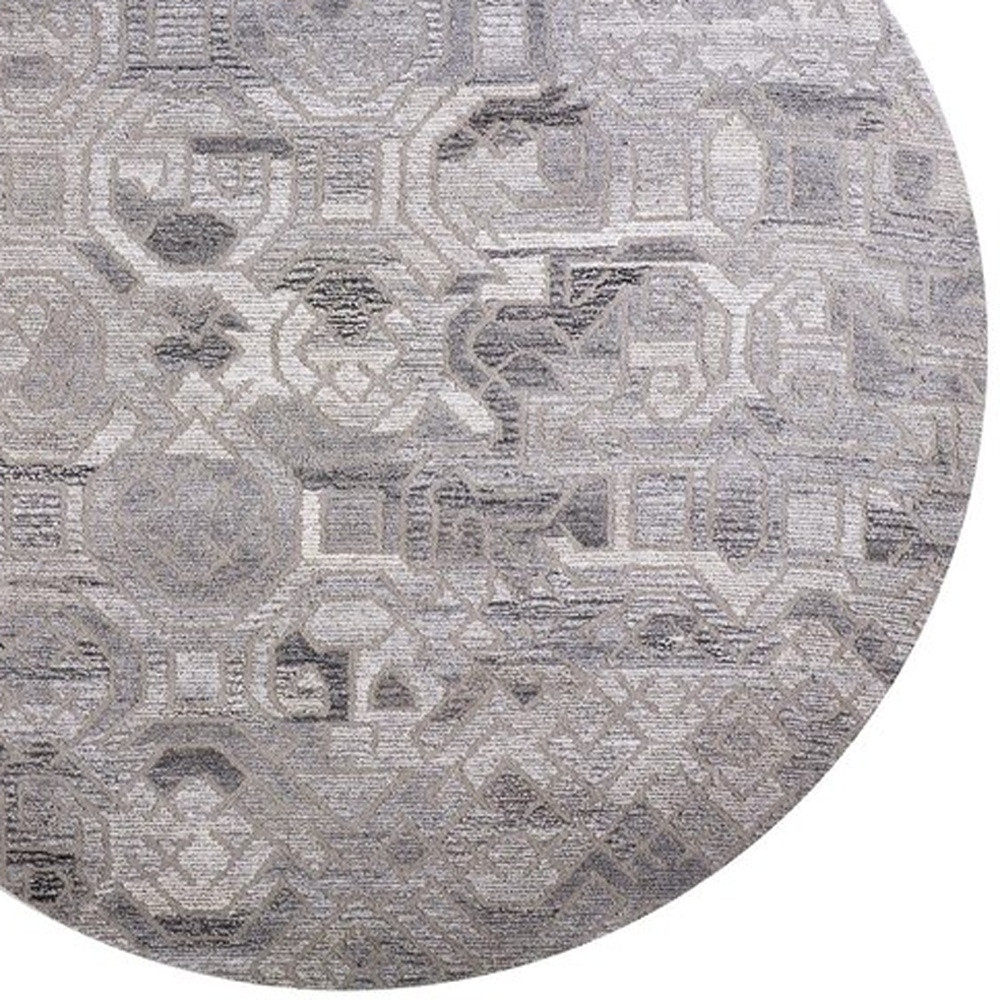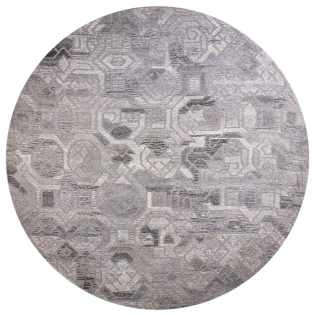 This 10-foot gray and ivory round wool abstract hand tufted area rug, is a great way to add warmth to a room. This geometric round shaped rug features a abstract pattern in gray and ivory that combines a good looking print with a unique and updated shape. The mix of shape, color, and design gives this rug refreshing visual interest. Area rugs help to give warmth and sense of home to your space. 120-inch H x 120-inch W x 0.55-inch D