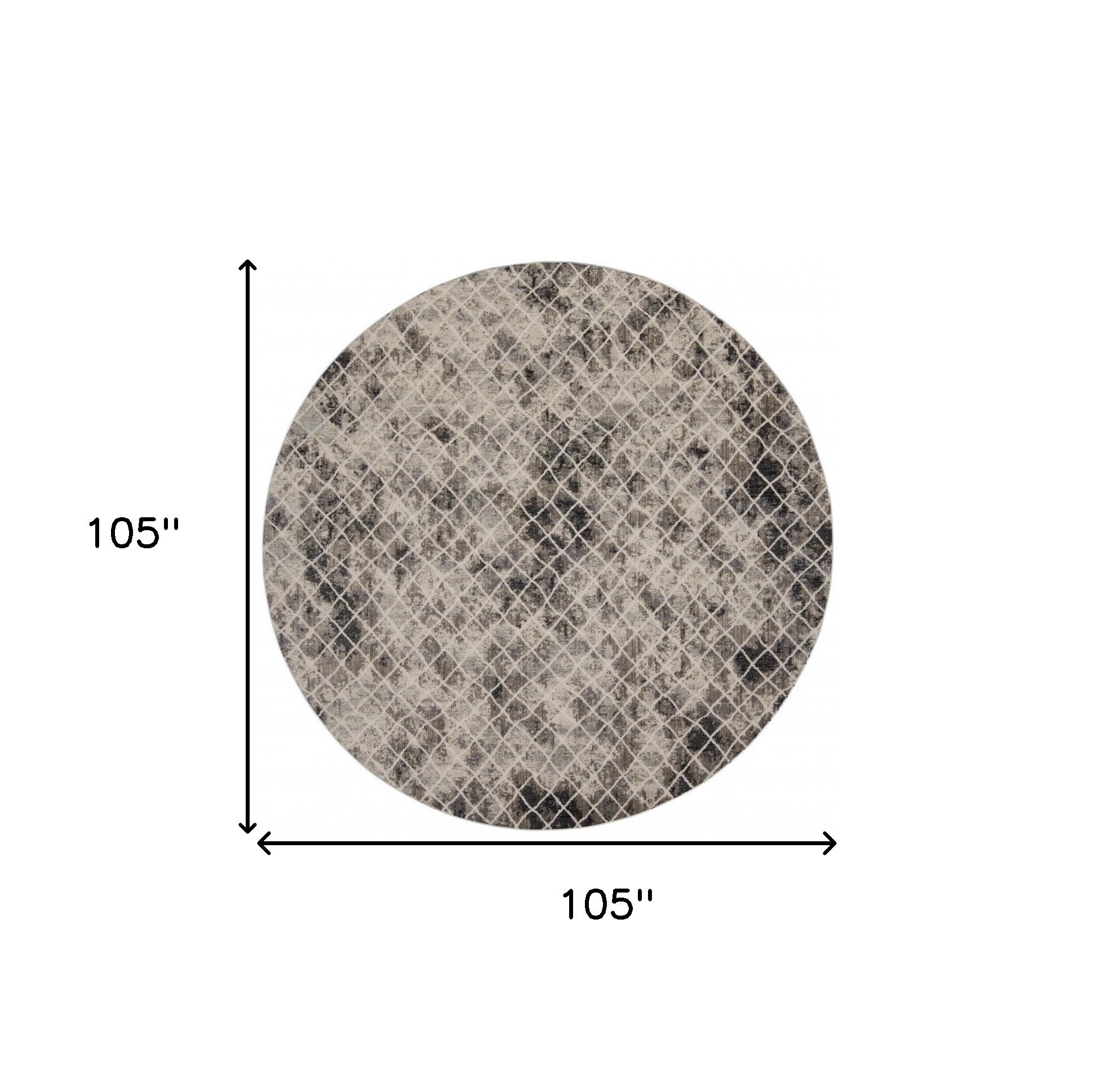 Add some artistry to your room with this 9-foot ivory and black geometric round rug. Ideal for spaces with kids and pets, this rug is stain resistant to help repel dirt and spilled liquids. Built to last, this rug crafted from polypropylene fibers is known for its durability and long lasting appeal. Rugs are a great way to showcase your style, hide imperfections, warm your home and reduce noise. 105.00-inch h x 105.00-inch w x 0.41-inch d.