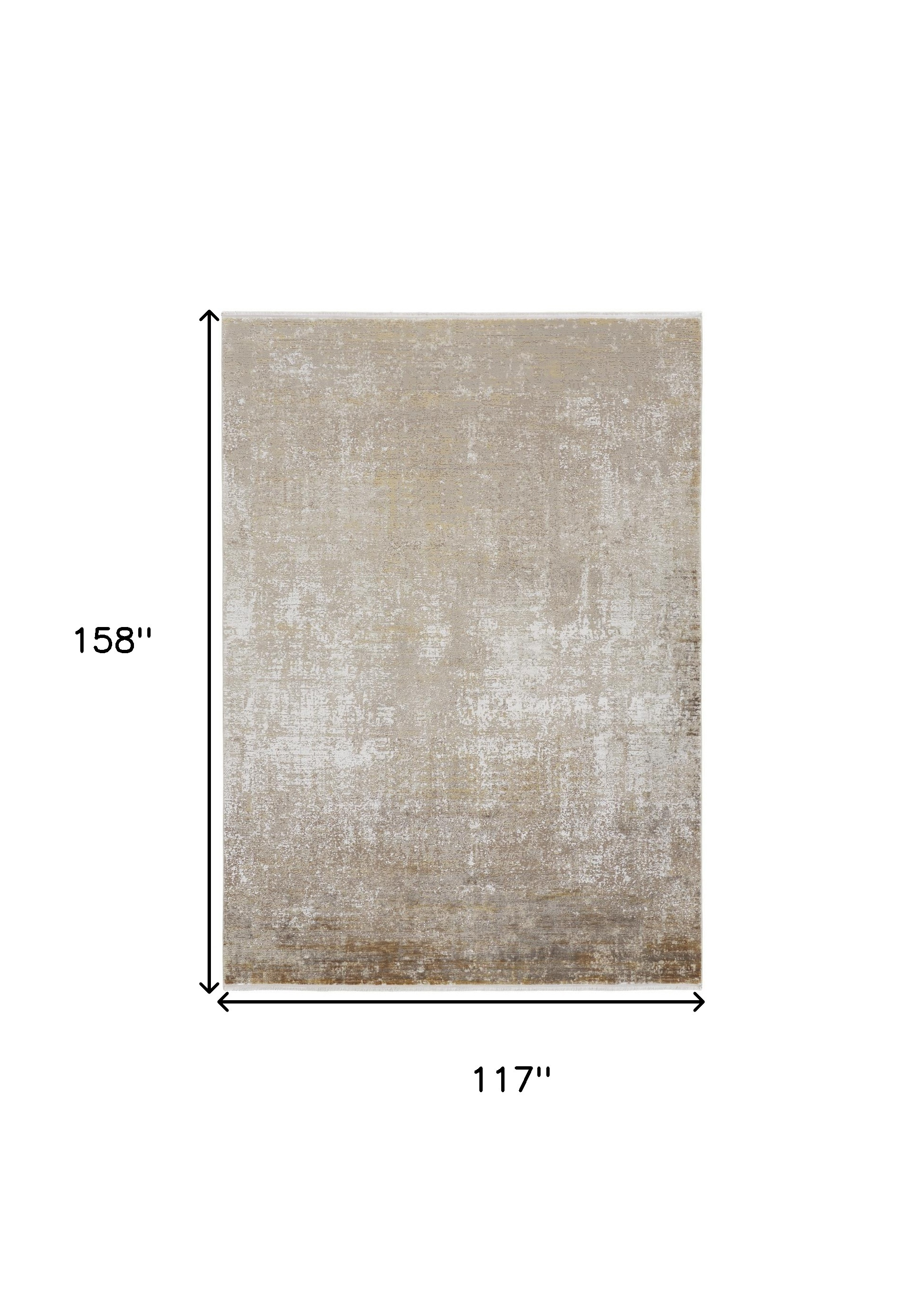 Set an inviting tone in your space with this 10' x 13' taupe ivory and gold abstract area rug with fringe. This rectangle shaped rug features a abstract design in taupe ivory and gold to give it visual interest. A classic shape marries with good looking design for your space Made in Turkey, this rug offers high quality combined with good looking designer sensibilities. Tassel ends bring a timeless and fashionable look to your interior. Place this area rug against a hardwood or tile floor and it will enliven your living space with style and sophistication. 0.32" H x 117" W x 158" D