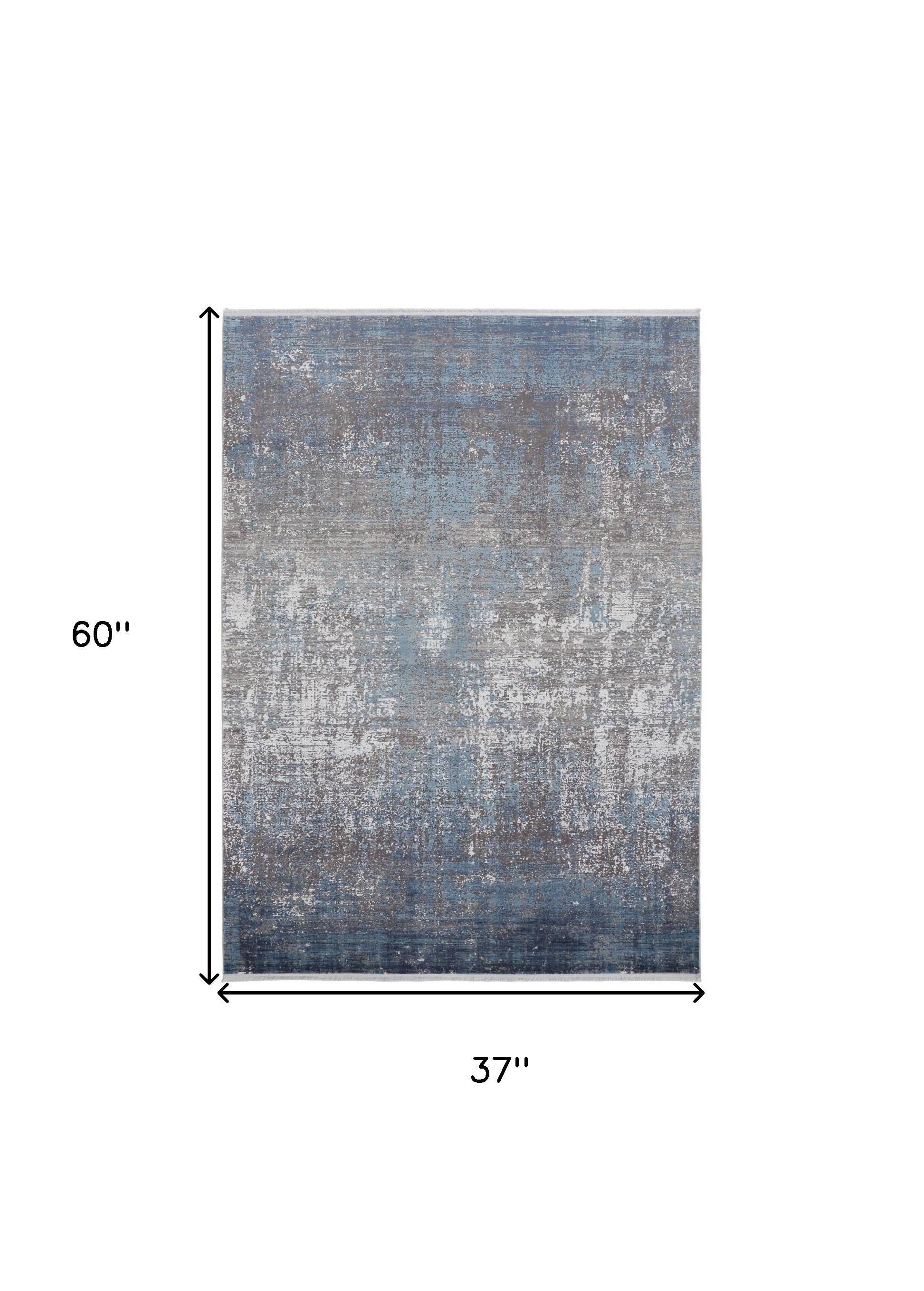 Add some artistry to your room with this 3-foot x 5-foot blue and gray abstract power loom distressed area rug with fringe. This rectangle shaped rug features a abstract design in blue and gray to give it visual interest. A classic shape marries with good looking design for your space tassel ends bring a timeless and fashionable look to your interior. 37-inch H x 60-inch W x 0.32-inch D