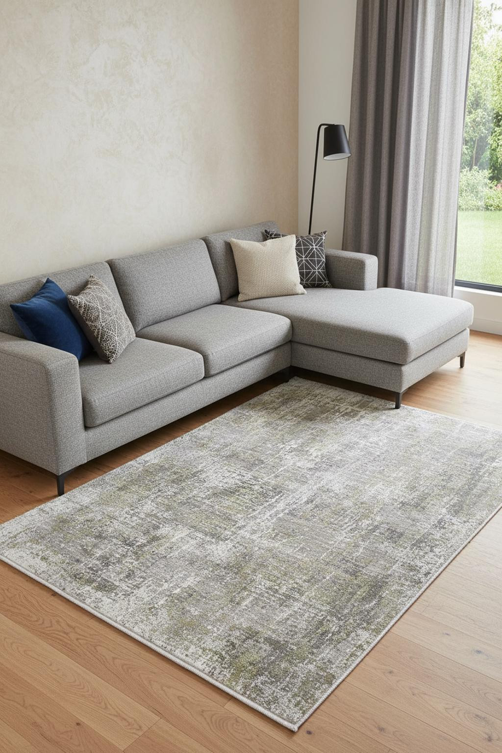 This 8' x 11' green gray and ivory abstract area rug with fringe, is a great way to add warmth to a room. This rectangle shaped rug features a abstract design in green gray and ivory to give it visual interest. A classic shape marries with good looking design for your space Made in Turkey, this rug offers high quality combined with good looking designer sensibilities. Tassel ends bring a timeless and fashionable look to your interior. Area Rugs help to give warmth and sense of home to your space. 0.32" H x 93" W x 132" D
