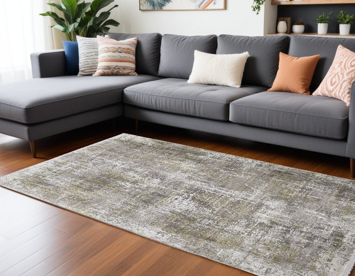 Add some artistry to your room with this 12-foot x 15-foot gray and ivory abstract area rug with fringe. Rugs are a great way to showcase your style, hide imperfections, warm your home and reduce noise. Tassel ends bring a timeless and fashionable look to your interior. This larger sized, modern styled rug is ready to create a focal point or statement piece in your room. 138.00-inch h x 174.00-inch w x 0.32-inch d.