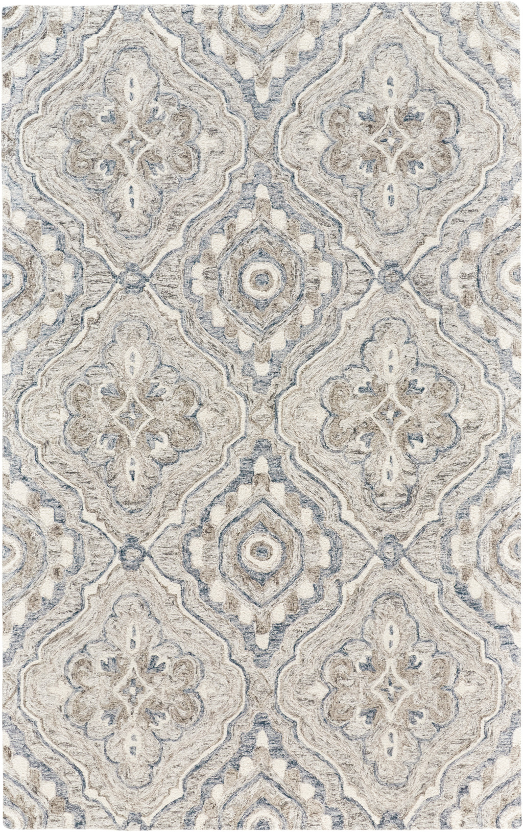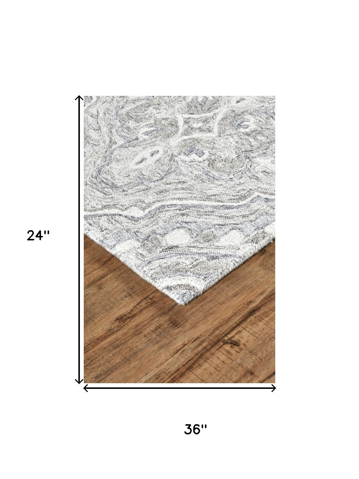 Set an inviting tone in your space with this 2' x 3' taupe blue and gray wool floral tufted handmade area rug. This rectangle shaped rug features a floral design in taupe blue and gray to give it visual interest. A classic shape marries with good looking design for your space Place this area rug against a hardwood or tile floor and it will enliven your living space with style and sophistication. 0.5" H x 24" W x 36" D