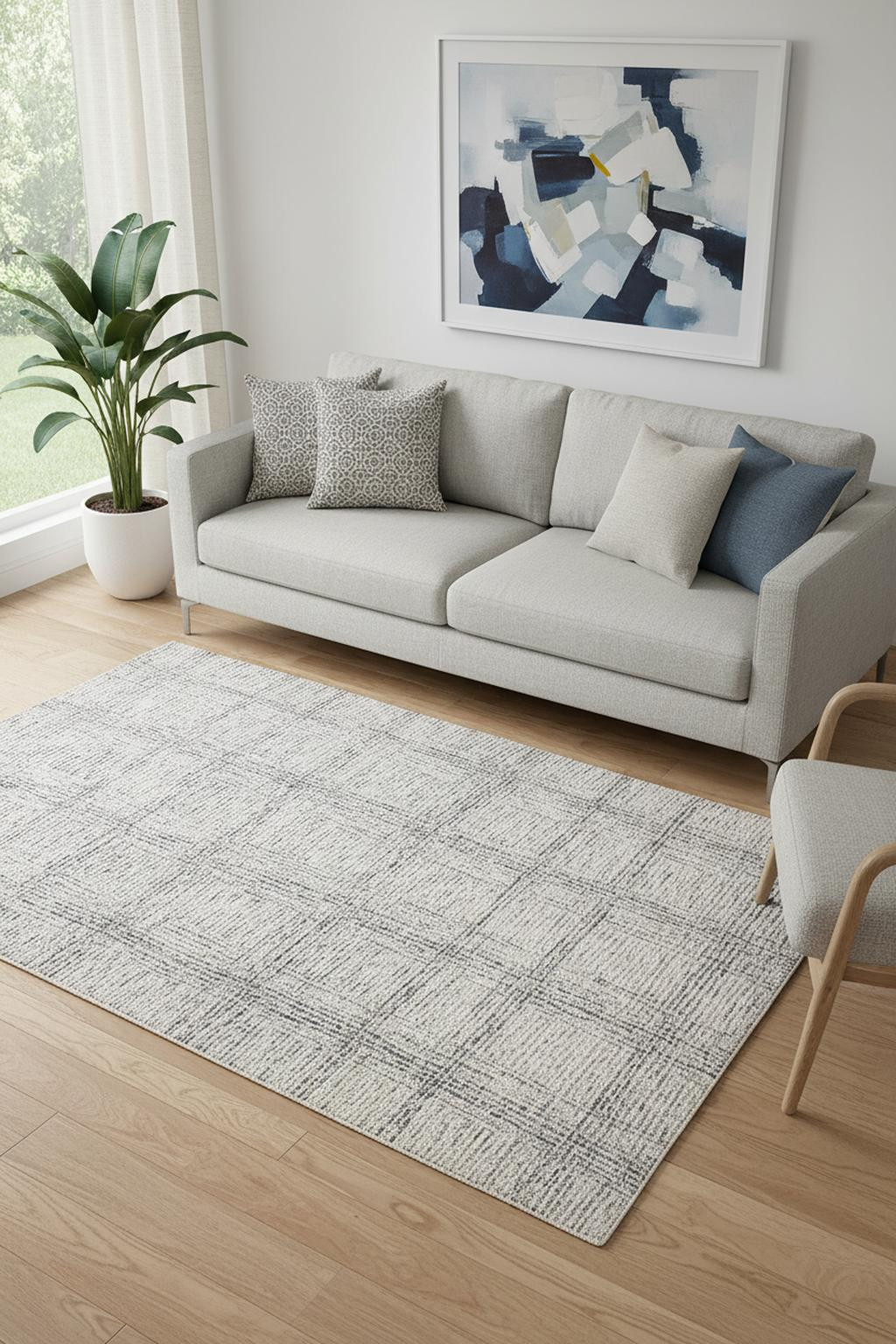 handmade stain resistant area rug, stain resistant area rug, resistant area rug, wool plaid tufted handmade stain, ivory gray wool |