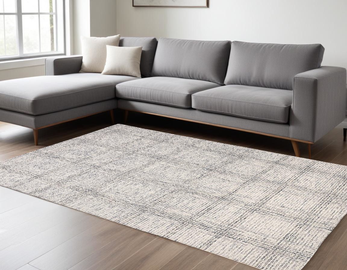 Add great coloration and comfortable texture to your space with this 9-foot x 12-foot ivory and gray wool plaid tufted handmade stain resistant area rug. This rectangle shaped rug features a plaid design that will add a functional and decorative accent to your space. Ideal for spaces with kids and pets, this rug is stain resistant to help repel dirt and spilled liquids. This smaller sized rug is just what you need for your walkway, or in front of door, cabinet, refrigerator, or chair. 108-inch h x 144-inch w x 0.5-inch d