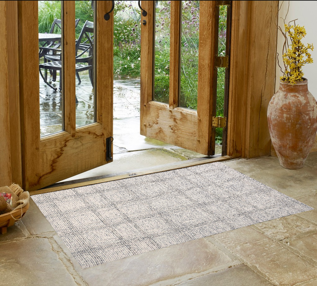 handmade stain resistant area rug, stain resistant area rug, resistant area rug, wool plaid tufted handmade stain, ivory gray wool |
