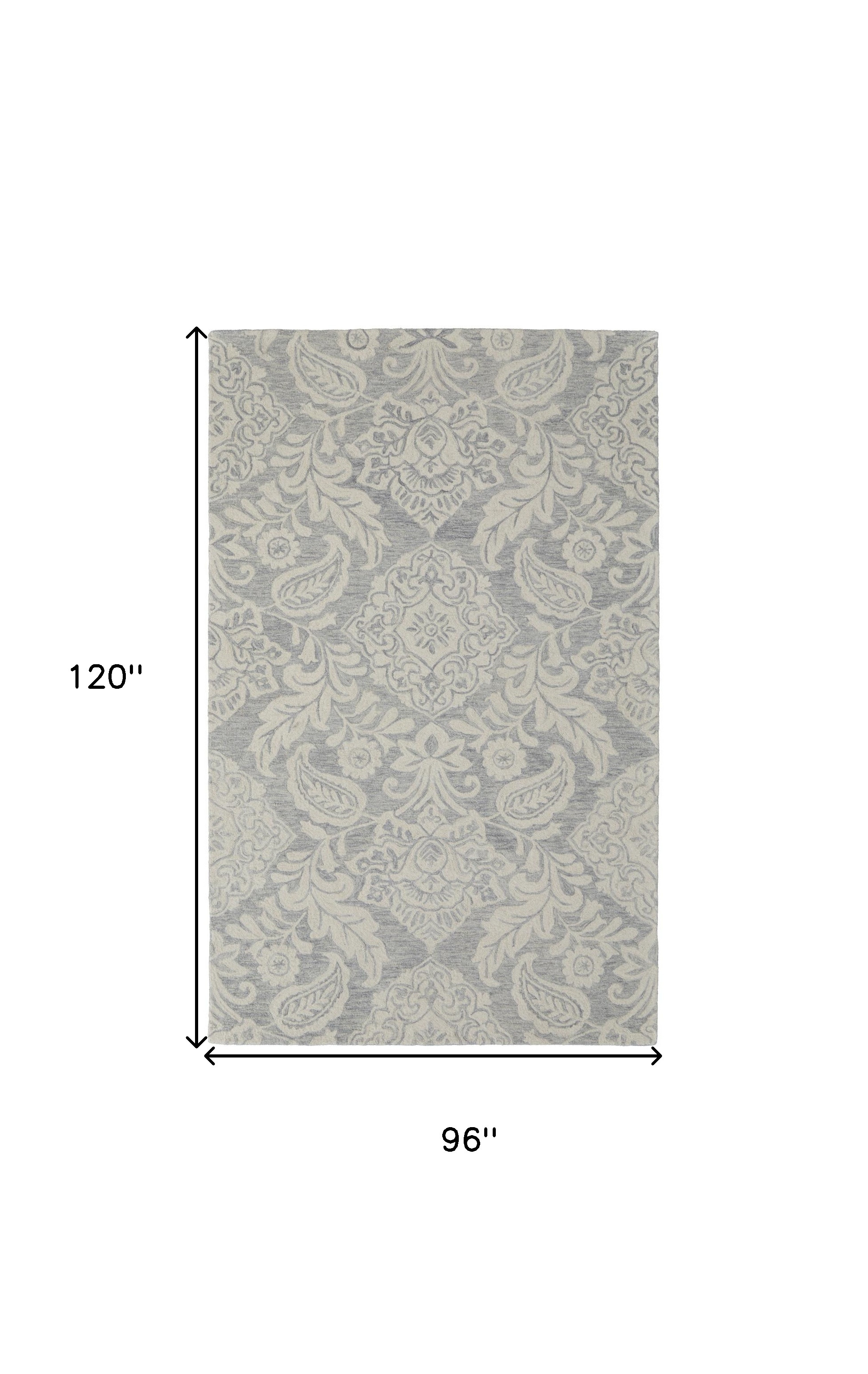 This 8' x 10' blue and ivory wool paisley tufted handmade stain resistant area rug, is a great way to add warmth to a room. This rectangle shaped rug features a paisley design in blue and ivory to give it visual interest. A classic shape marries with good looking design for your space Ideal for spaces with kids and pets, this rug is stain resistant to help repel stains and spilled liquids. Place this area rug against a hardwood or tile floor and it will enliven your living space with style and sophistication. 0.5" H x 96" W x 120" D