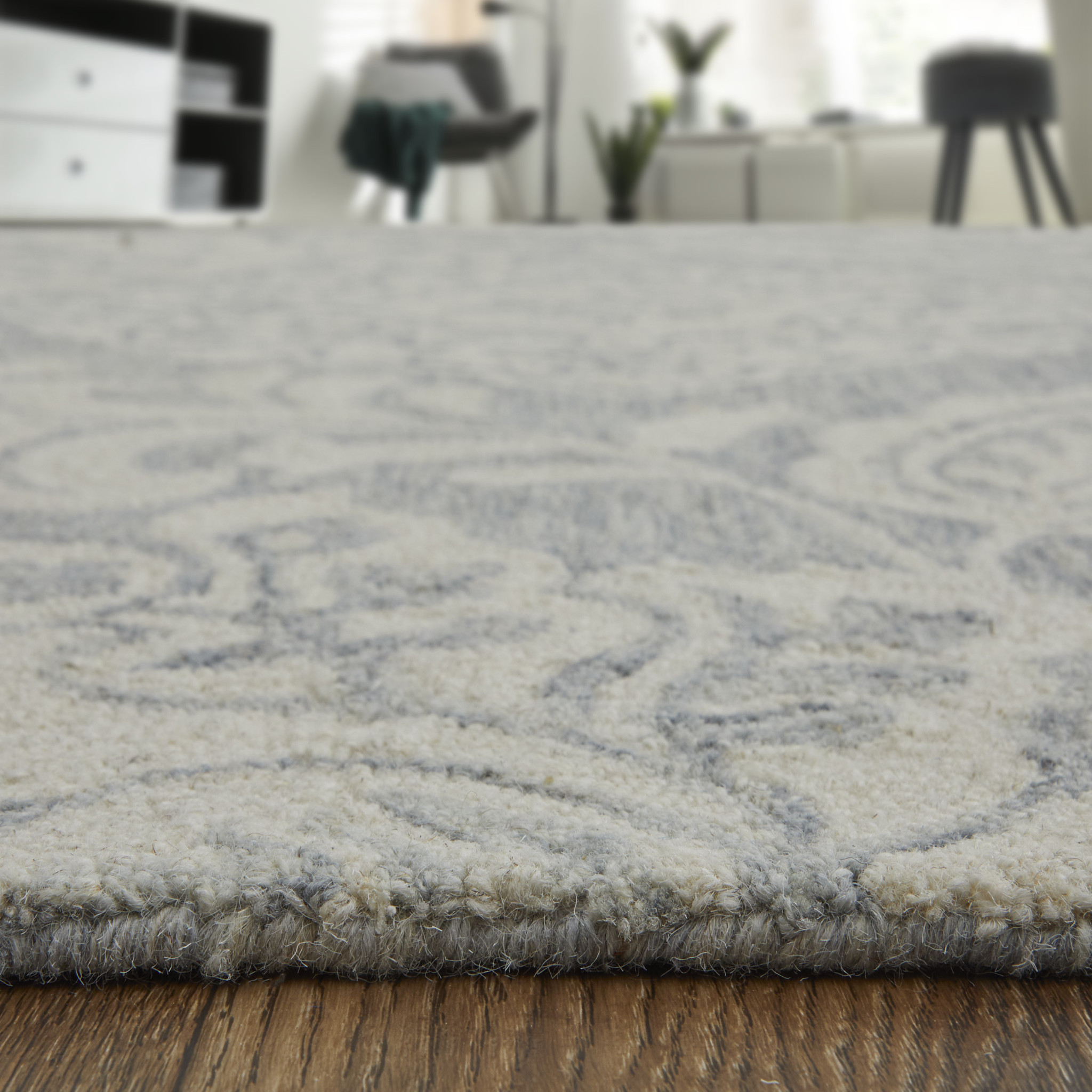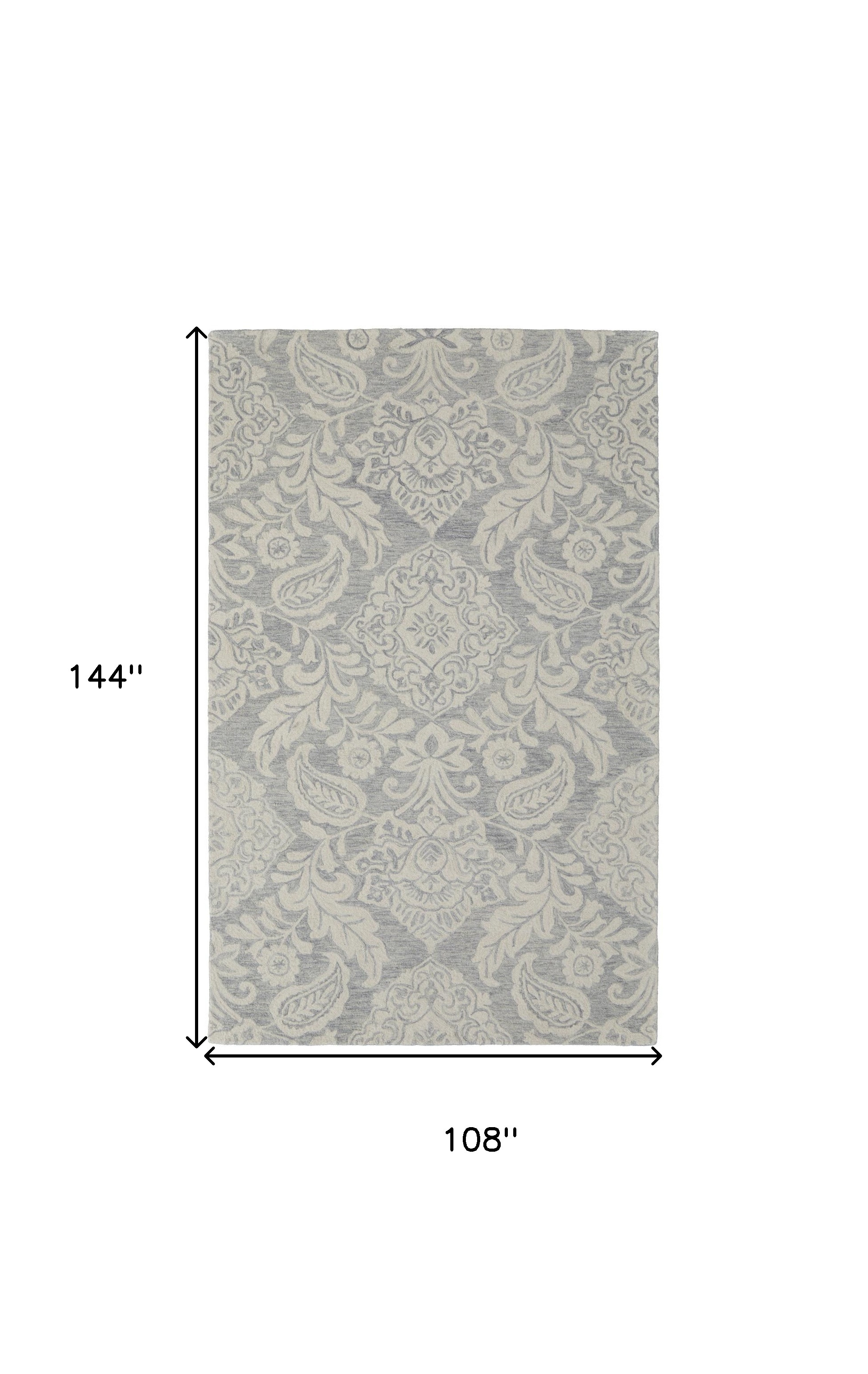 Add some artistry to your room with this 9' x 12' blue and ivory wool paisley tufted handmade stain resistant area rug. This rectangle shaped rug features a paisley design in blue and ivory to give it visual interest. A classic shape marries with good looking design for your space Ideal for spaces with kids and pets, this rug is stain resistant to help repel stains and spilled liquids. Area Rugs help to give warmth and sense of home to your space. 0.5" H x 108" W x 144" D