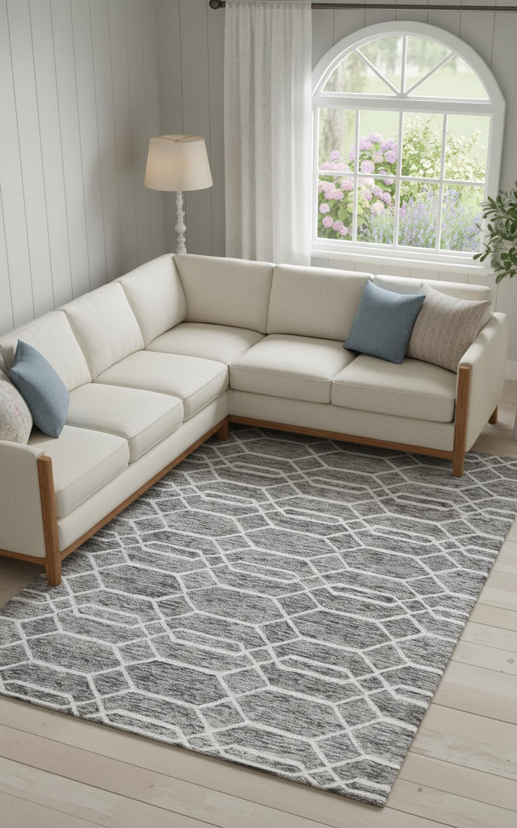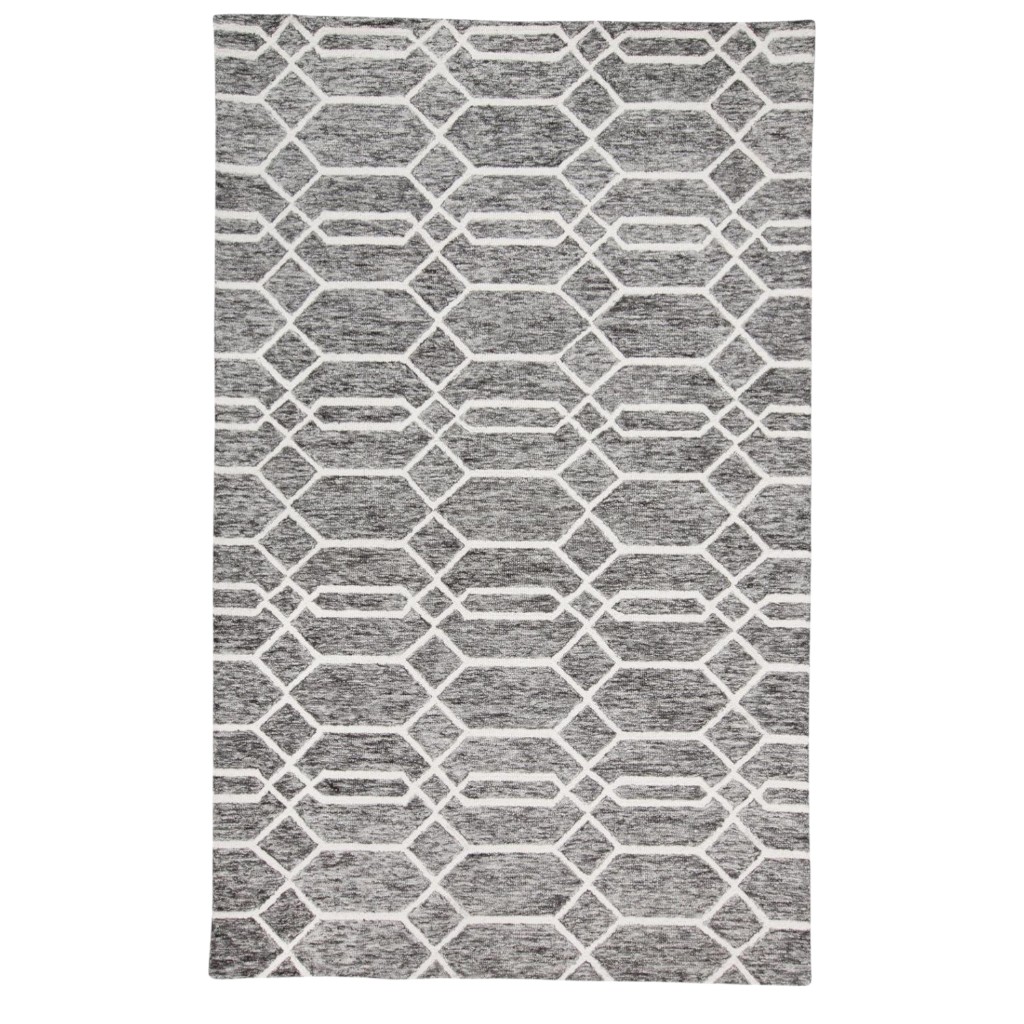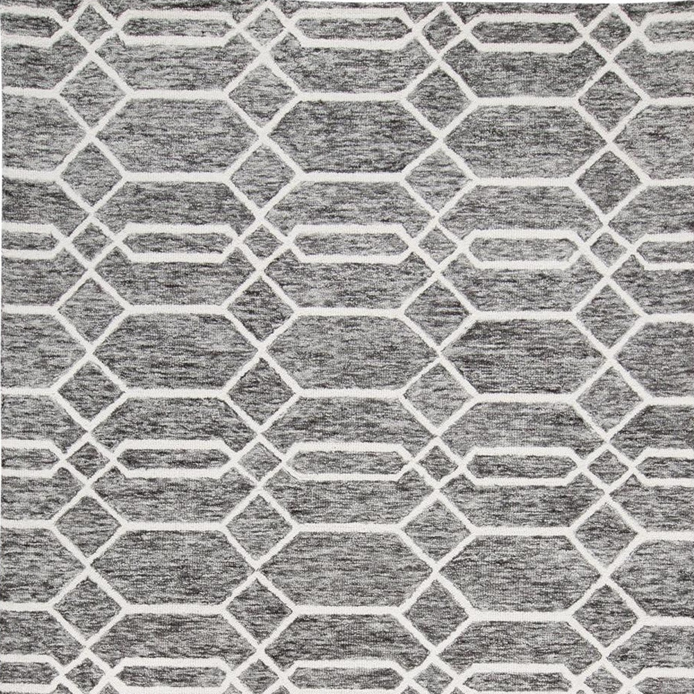 Add some artistry to your room with this 9' x 12' gray black and ivory wool geometric tufted handmade stain resistant area rug. This rectangle shaped rug features a geometric design in gray black and ivory to give it visual interest. A classic shape marries with good looking design for your space Ideal for spaces with kids and pets, this rug is stain resistant to help repel stains and spilled liquids. Place this area rug against a hardwood or tile floor and it will enliven your living space with style and sophistication. 0.5" H x 108" W x 144" D