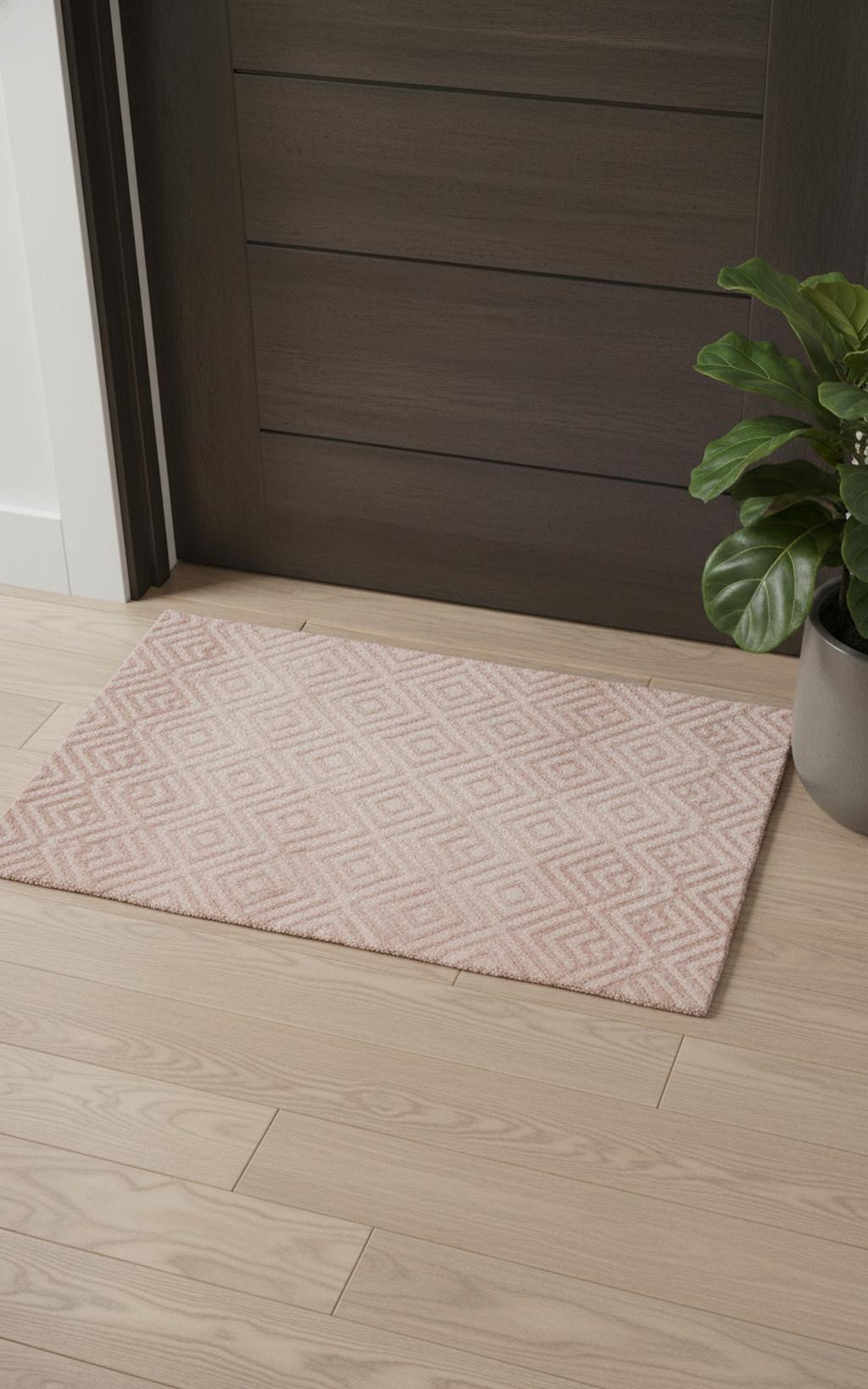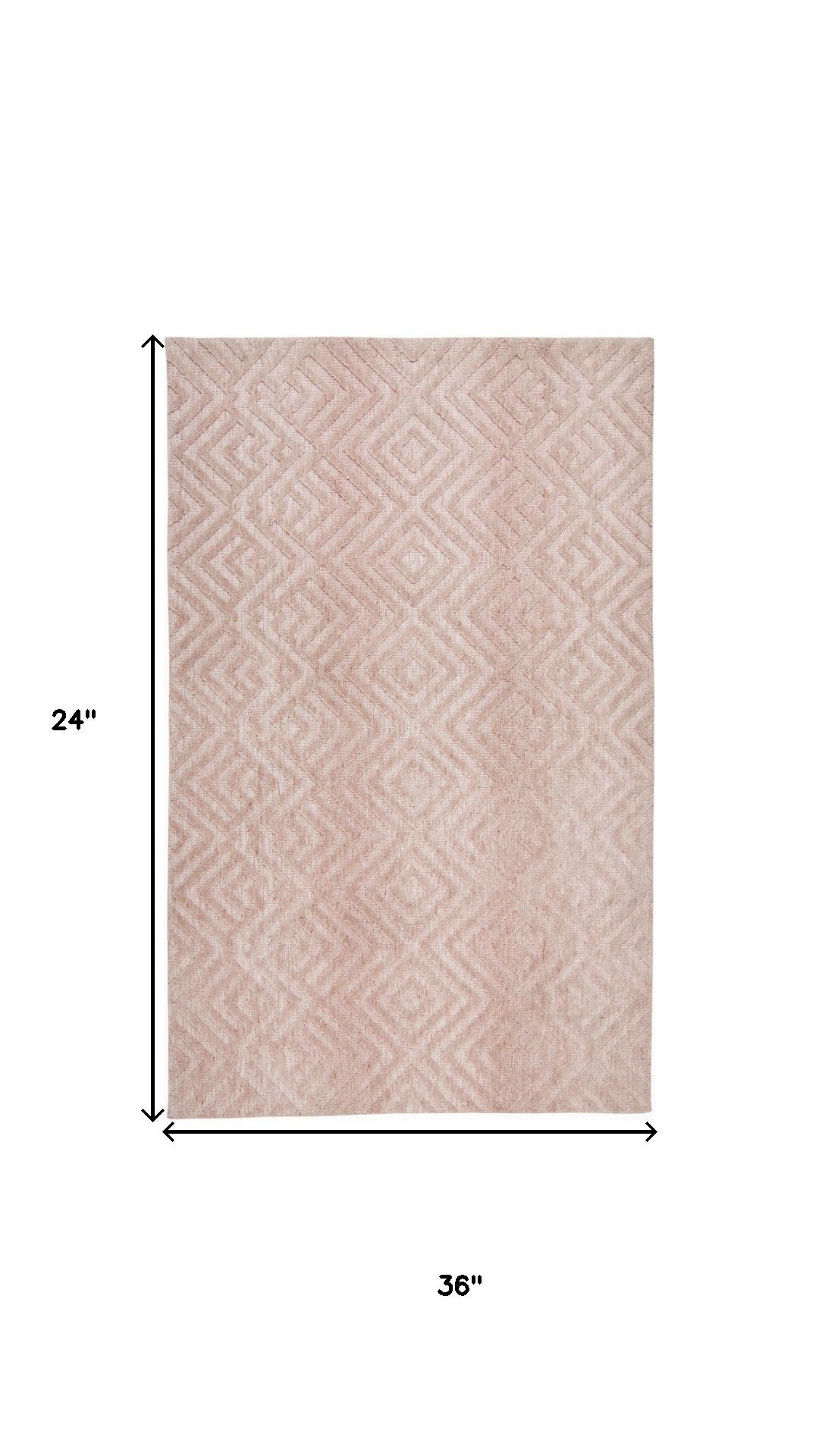 This 2' x 3' pink and ivory geometric stain resistant area rug, is a great way to add warmth to a room. This rectangle shaped rug features a geometric design in pink and ivory to give it visual interest. A classic shape marries with good looking design for your space Ideal for spaces with kids and pets, this rug is stain resistant to help repel stains and spilled liquids. Place this area rug against a hardwood or tile floor and it will enliven your living space with style and sophistication. 0.4" H x 24" W x 36" D