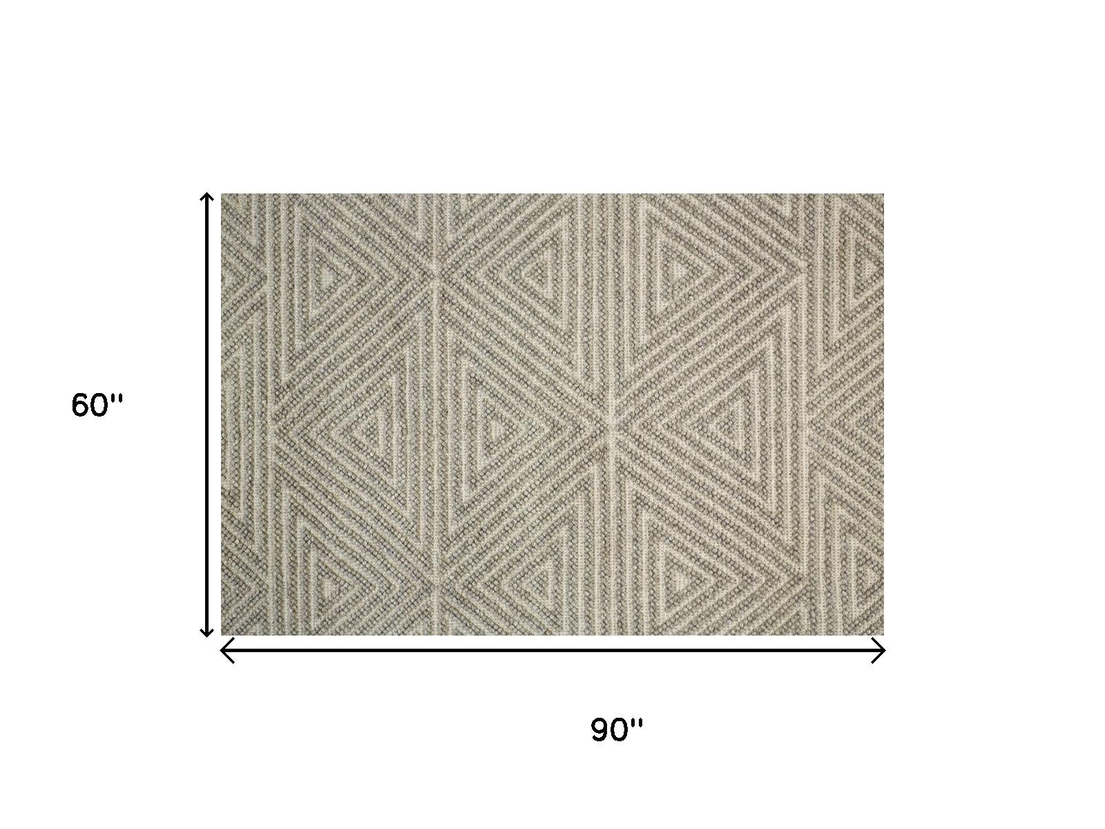 Add some artistry to your room with this 5' x 8' tan and ivory wool geometric hand woven area rug with fringe. This rectangle shaped rug features a geometric design in tan and ivory to give it visual interest. A classic shape marries with good looking design for your space Tassel ends bring a timeless and fashionable look to your interior. Crafted by skilled artisans, this hand woven rug is genuine and unique. No two will be exactly alike. Area Rugs help to give warmth and sense of home to your space. 0.47" H x 60" W x 90" D