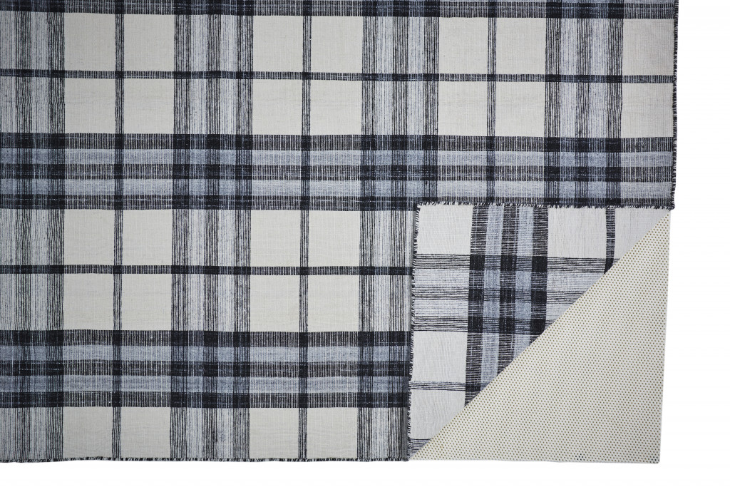 Set an inviting tone in your space with this 8' x 10' ivory blue and black abstract hand woven stain resistant area rug. This rectangle shaped rug features a abstract design in ivory blue and black to give it visual interest. A classic shape marries with good looking design for your space Ideal for spaces with kids and pets, this rug is stain resistant to help repel stains and spilled liquids. Crafted by skilled artisans, this hand woven rug is genuine and unique. No two will be exactly alike. Place this area rug against a hardwood or tile floor and it will enliven your living space with style and sophistication. 0.16" H x 96" W x 120" D