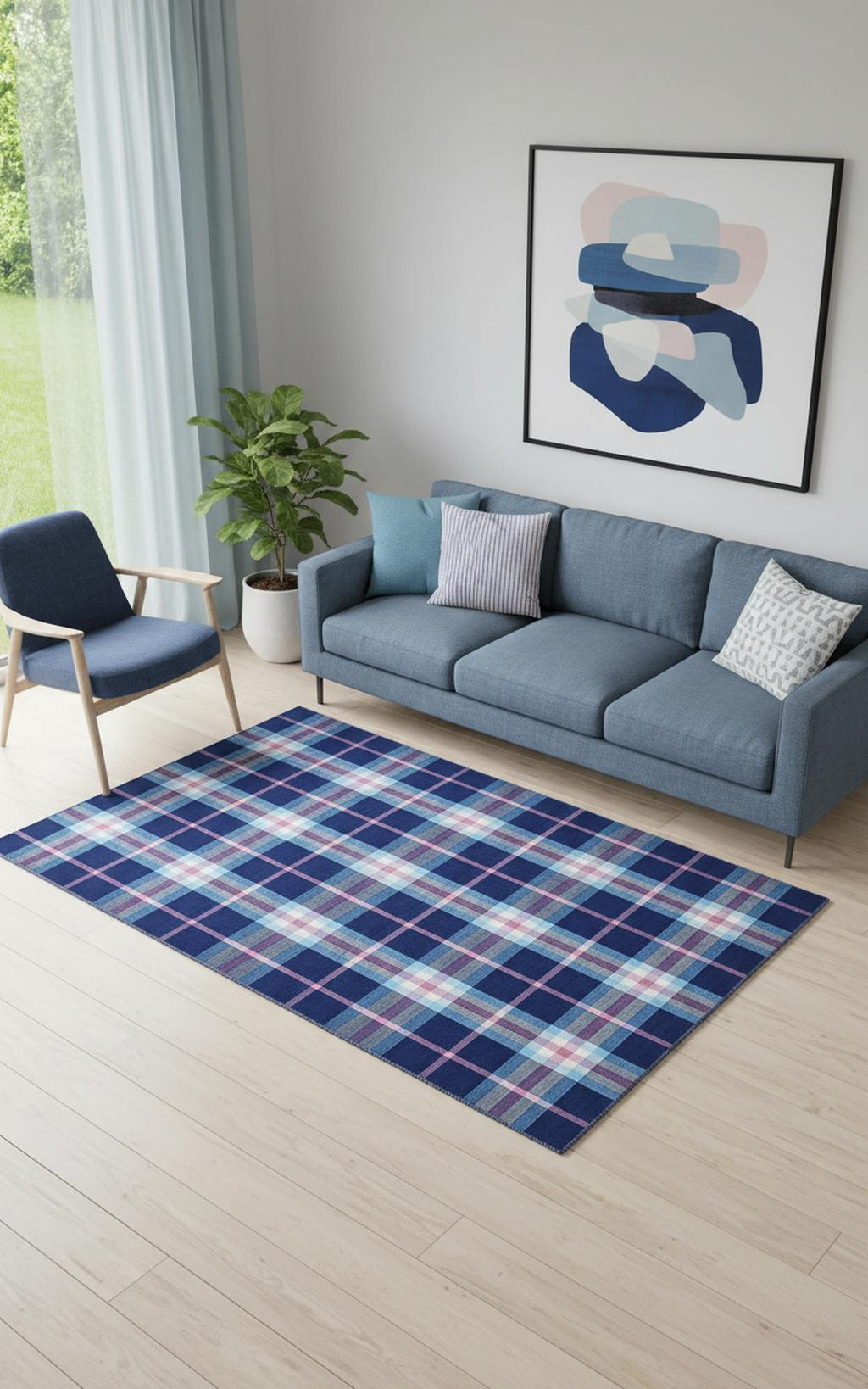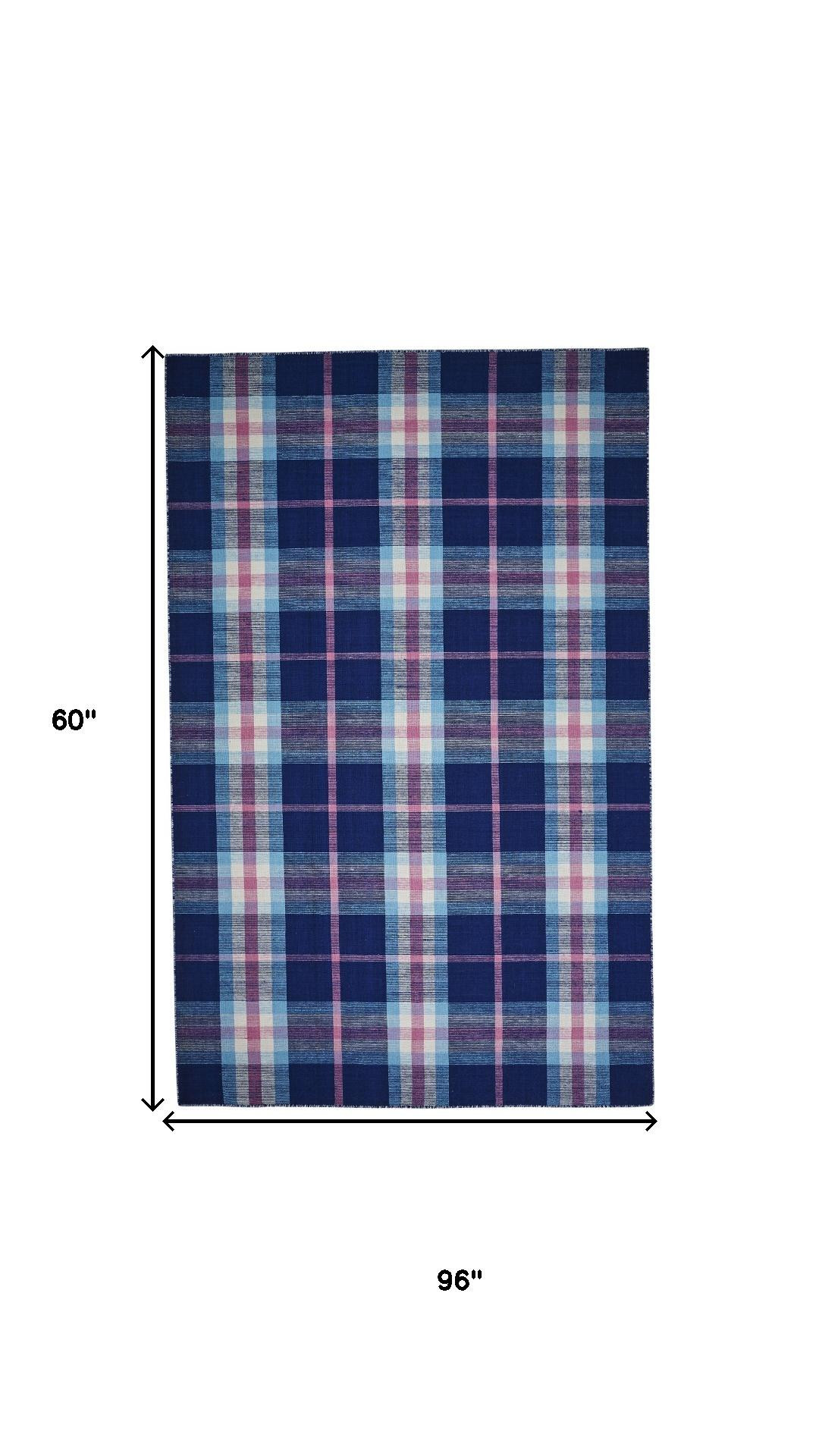 Add some artistry to your room with this 5' x 8' blue pink and white abstract hand woven stain resistant area rug. This rectangle shaped rug features a abstract design in blue pink and white to give it visual interest. A classic shape marries with good looking design for your space Ideal for spaces with kids and pets, this rug is stain resistant to help repel stains and spilled liquids. Crafted by skilled artisans, this hand woven rug is genuine and unique. No two will be exactly alike. Area Rugs help to give warmth and sense of home to your space. 0.16" H x 60" W x 96" D