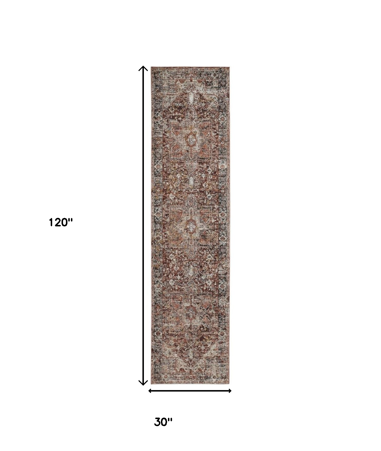 Add great coloration and comfortable texture to your space with this 10-foot red ivory and black abstract distressed runner rug. Built to last, this rug crafted from polyester fibers is known for its durability and long lasting appeal. Rugs are a great way to showcase your style, hide imperfections, warm your home and reduce noise. This modern style runner makes a great accent for the hallway, in front of cabinets, in the laundry room, or any other space you need a narrow and long rug. 30.00-inch h x 120.00-inch w x 0.39-inch d.
