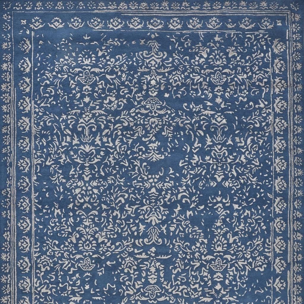 This 8' x 10' blue and silver wool floral tufted handmade distressed area rug, is a great way to add warmth to a room. This rectangle shaped rug features a floral design in blue and silver to give it visual interest. A classic shape marries with good looking design for your space Place this area rug against a hardwood or tile floor and it will enliven your living space with style and sophistication. 0.31" H x 96" W x 120" D
