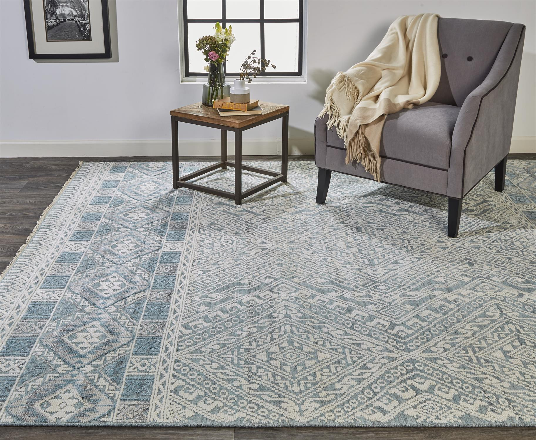 geometric hand knotted area rug, hand knotted area rug, knotted area rug, ivory blue geometric hand knotted, 10' X 13' ivory blue geometric |