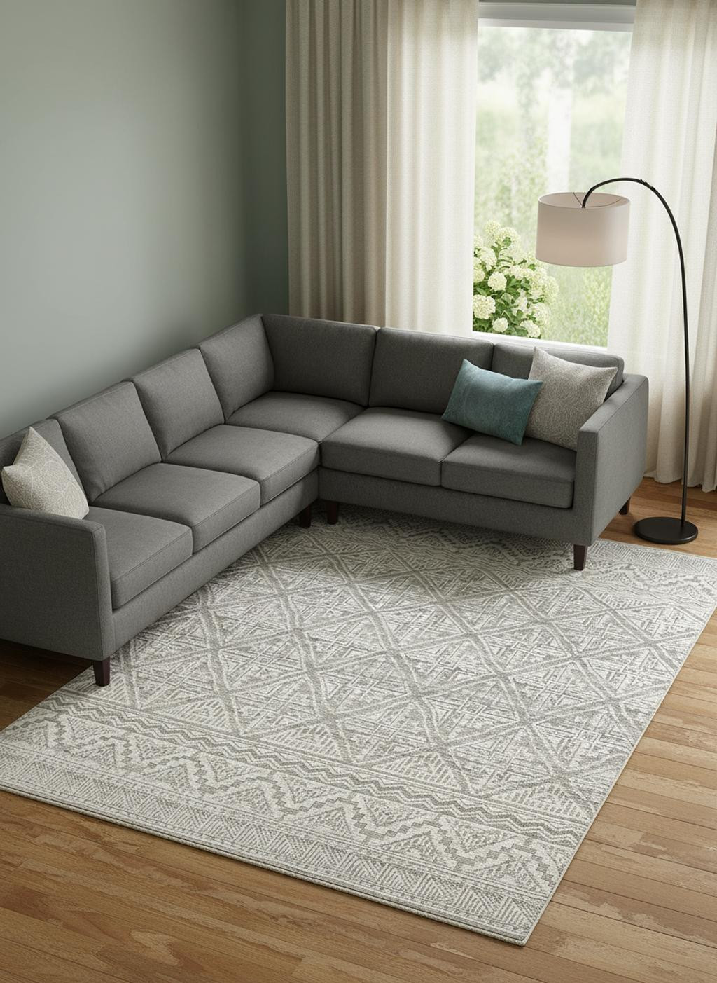 This 10' x 13' ivory tan and gray geometric hand knotted area rug, is a great way to add warmth to a room. This rectangle shaped rug features a geometric design in ivory tan and gray to give it visual interest. A classic shape marries with good looking design for your space Crafted by skilled artisans, this hand knotted rug is genuine and unique. No two will be exactly alike. Area Rugs help to give warmth and sense of home to your space. 0.31" H x 114" W x 162" D