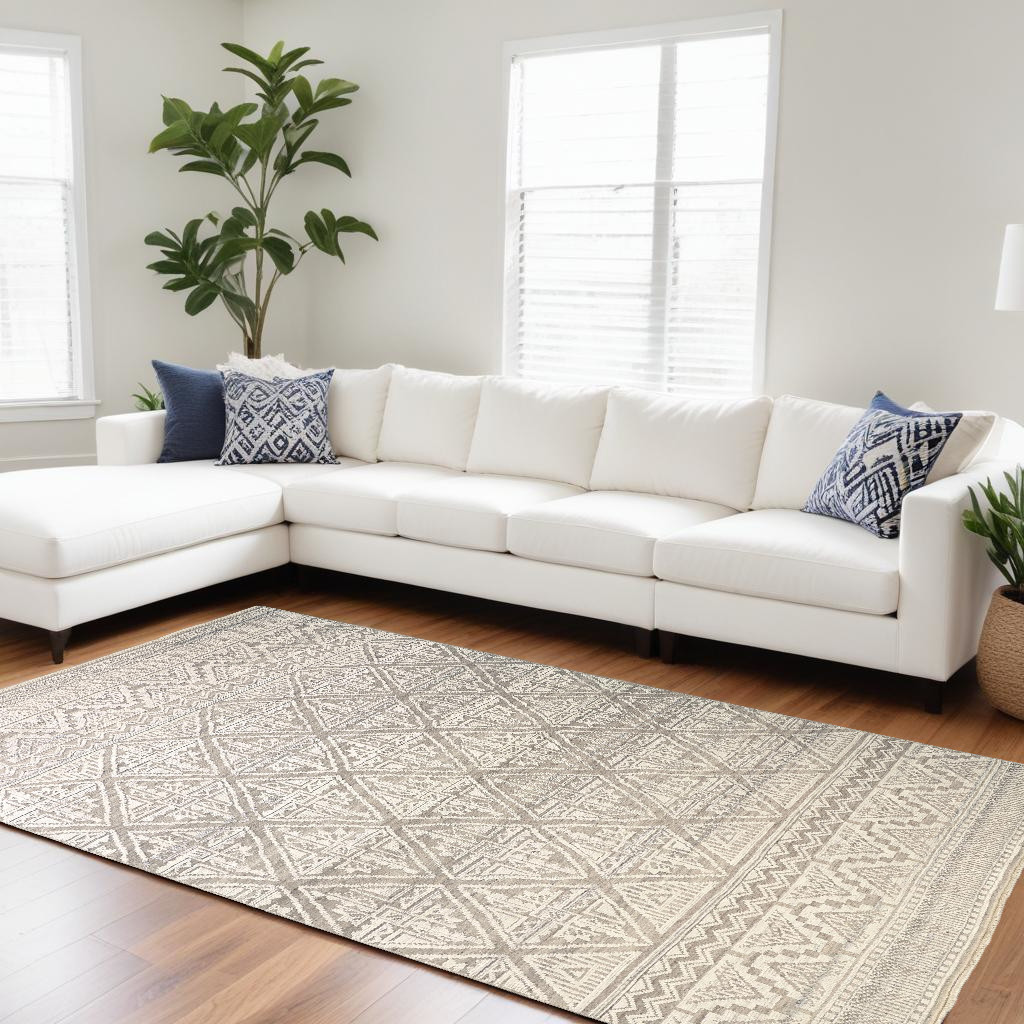 geometric hand knotted area rug, hand knotted area rug, knotted area rug, ivory geometric hand knotted area, 12' X 15' gray ivory geometric |