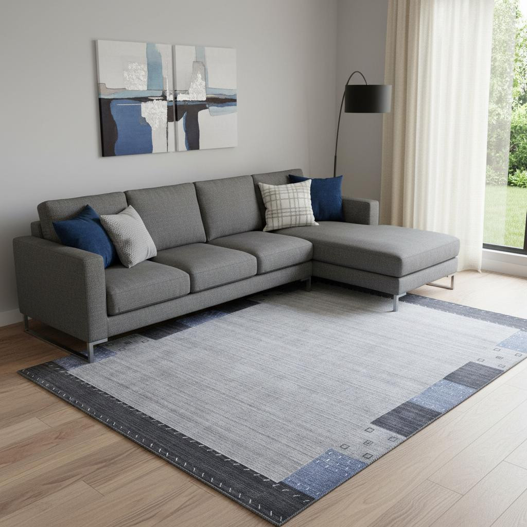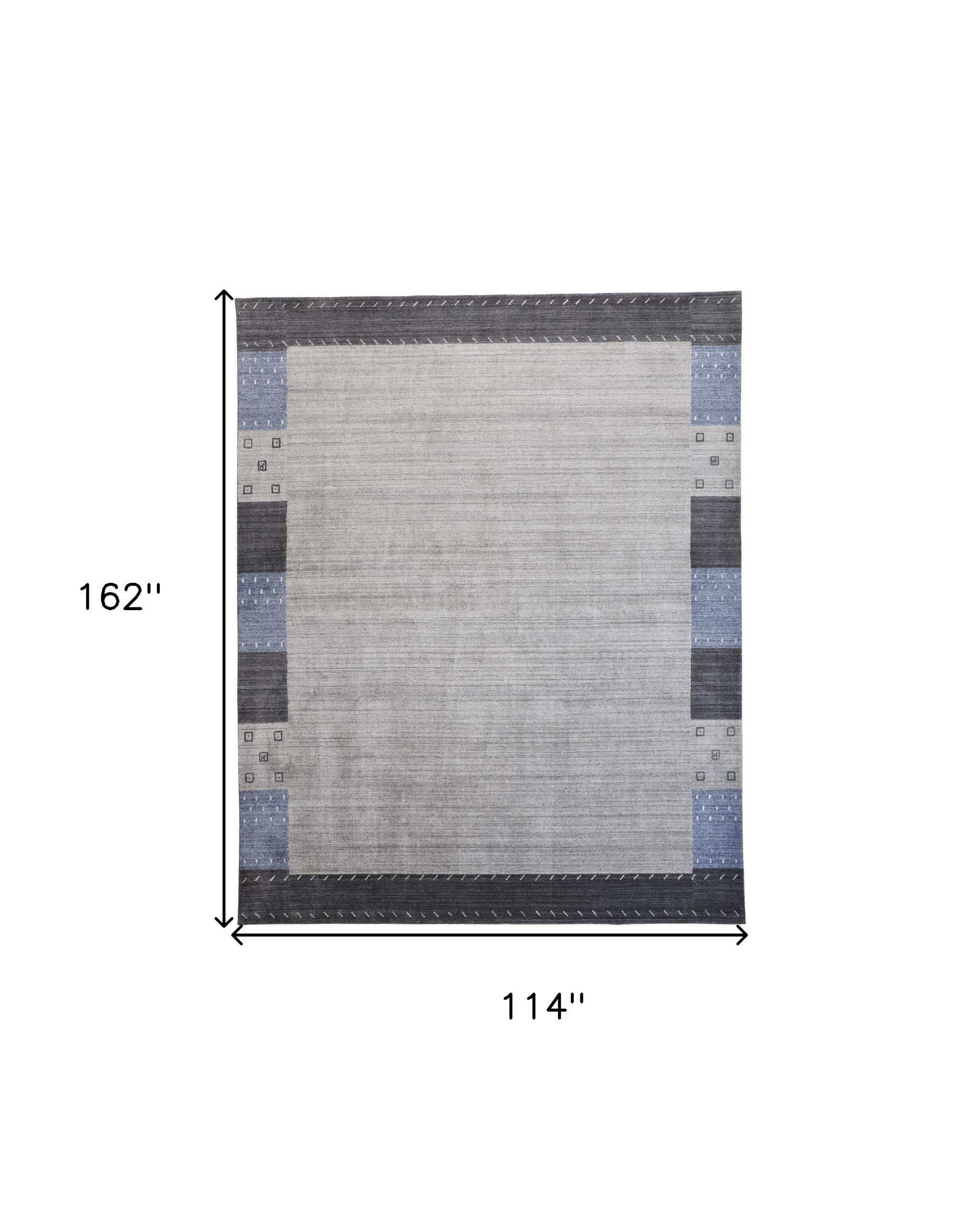 Set an inviting tone in your space with this 10' x 13' gray blue and black wool hand knotted stain resistant area rug. This rectangle shaped rug flaunts a gray blue and black color that will be a great way to accent your space. Solid colors are versatile and will blend with any existing decor style. Ideal for spaces with kids and pets, this rug is stain resistant to help repel stains and spilled liquids. Crafted by skilled artisans, this hand knotted rug is genuine and unique. No two will be exactly alike. Area Rugs help to give warmth and sense of home to your space. 0.75" H x 114" W x 162" D