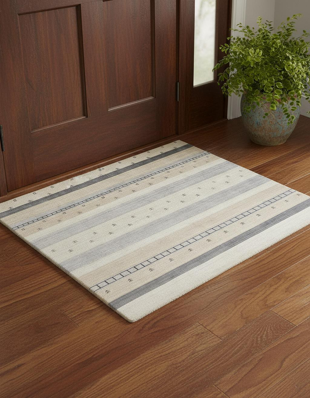 This 2' x 3' ivory tan and gray wool striped hand knotted stain resistant area rug, is a great way to add warmth to a room. This rectangle shaped rug features a striped design in ivory tan and gray to give it visual interest. A classic shape marries with good looking design for your space Ideal for spaces with kids and pets, this rug is stain resistant to help repel stains and spilled liquids. Crafted by skilled artisans, this hand knotted rug is genuine and unique. No two will be exactly alike. Area Rugs help to give warmth and sense of home to your space. 0.75" H x 24" W x 36" D