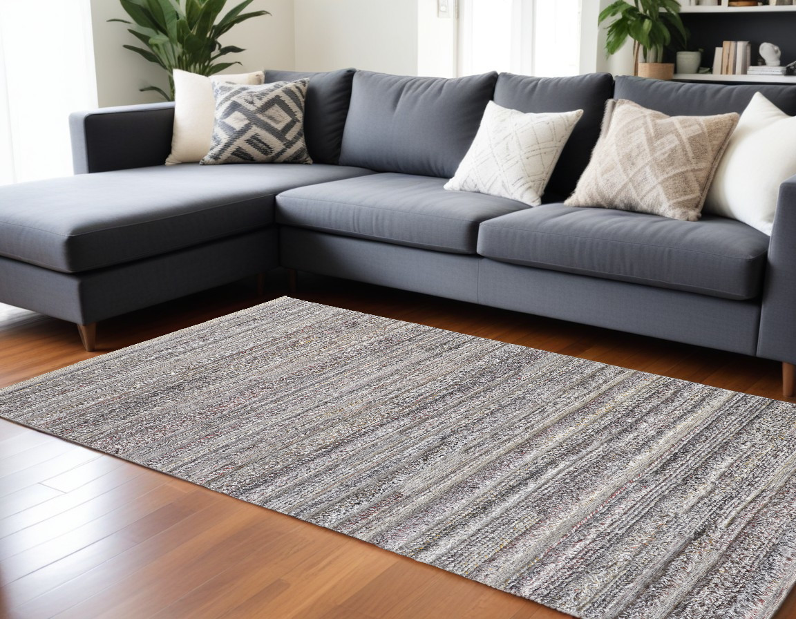 Add great coloration and comfortable texture to your space with this 9' x 12' taupe ivory and red striped hand woven stain resistant area rug. This rectangle shaped rug features a striped design in taupe ivory and red to give it visual interest. A classic shape marries with good looking design for your space Ideal for spaces with kids and pets, this rug is stain resistant to help repel stains and spilled liquids. Crafted by skilled artisans, this hand woven rug is genuine and unique. No two will be exactly alike. Area Rugs help to give warmth and sense of home to your space. 1" H x 108" W x 144" D