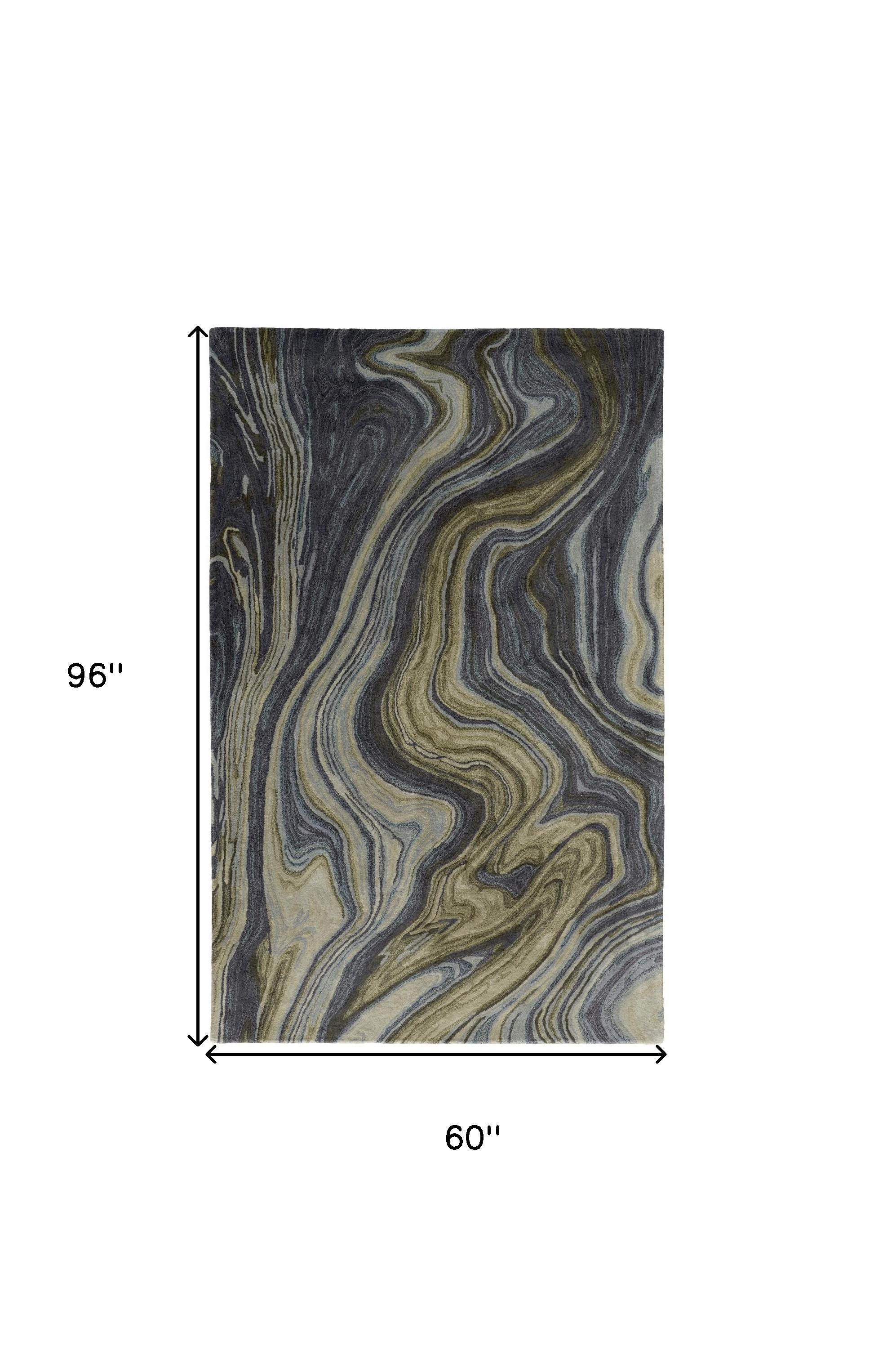 Add some artistry to your room with this 5-foot x 8-foot blue and green abstract hand tufted area rug. Crafted from wool blend fibers that give this piece premium texture, refinement, and appeal. This rectangle shaped rug features a abstract design that will add a functional and decorative accent to your space. Ideal for spaces with kids and pets, this rug is stain resistant to help repel dirt and spilled liquids. This larger sized rug is ideal to create a focal point or statement piece in your room. 60-inch h x 96-inch w x 0.51-inch d