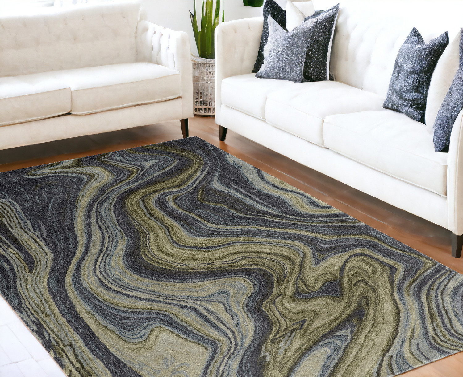 abstract hand tufted area rug, hand tufted area rug, tufted area rug, green abstract hand tufted area, abstract hand tufted area |