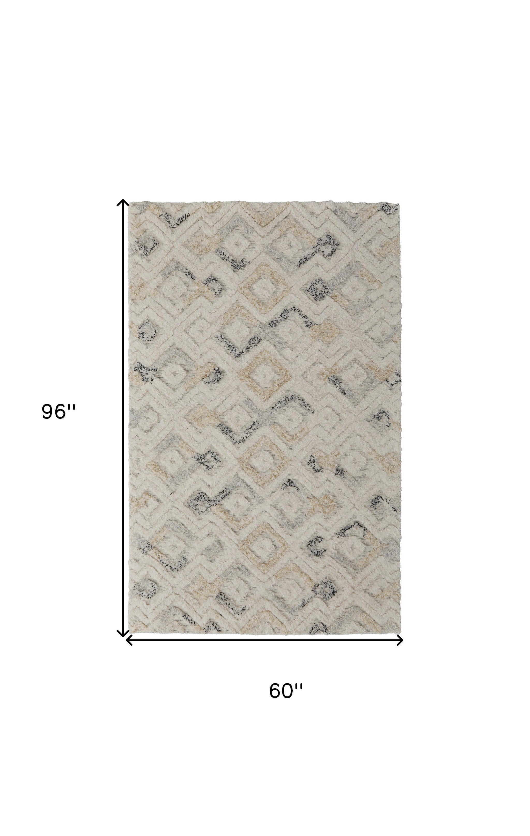 Set an inviting tone in your space with this 5-foot x 8-foot gray and ivory geometric hand tufted area rug. This rectangle shaped rug features a geometric design in gray and ivory to give it visual interest. A classic shape marries with good looking design for your space ideal for spaces with kids and pets, this rug is stain resistant to help repel stains and spilled liquids. Place this area rug against a hardwood or tile floor and it will enliven your living space with style and sophistication. 60-inch H x 96-inch W x 0.5-inch D