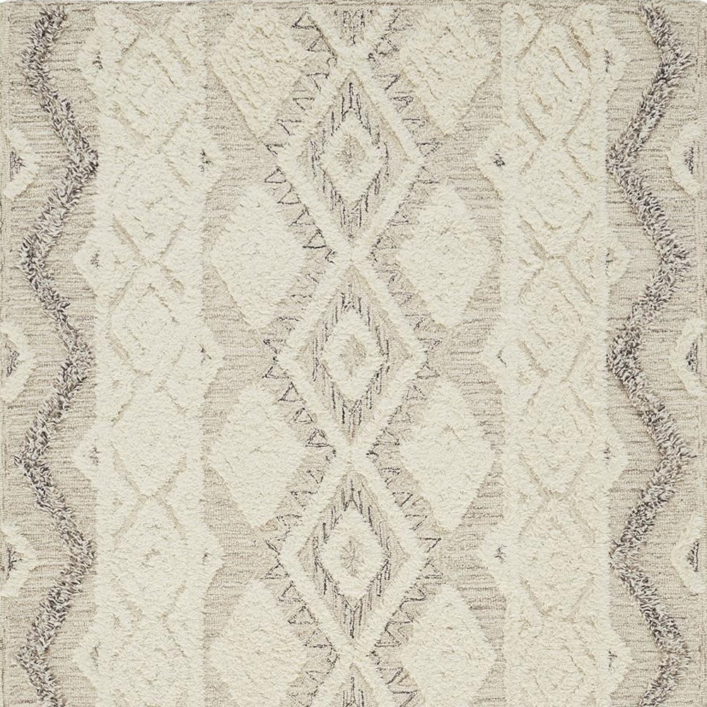 This 4' x 6' ivory taupe and gray wool geometric tufted handmade stain resistant area rug, is a great way to add warmth to a room. This rectangle shaped rug features a geometric design in ivory taupe and gray to give it visual interest. A classic shape marries with good looking design for your space Ideal for spaces with kids and pets, this rug is stain resistant to help repel stains and spilled liquids. Place this area rug against a hardwood or tile floor and it will enliven your living space with style and sophistication. 0.5" H x 48" W x 72" D