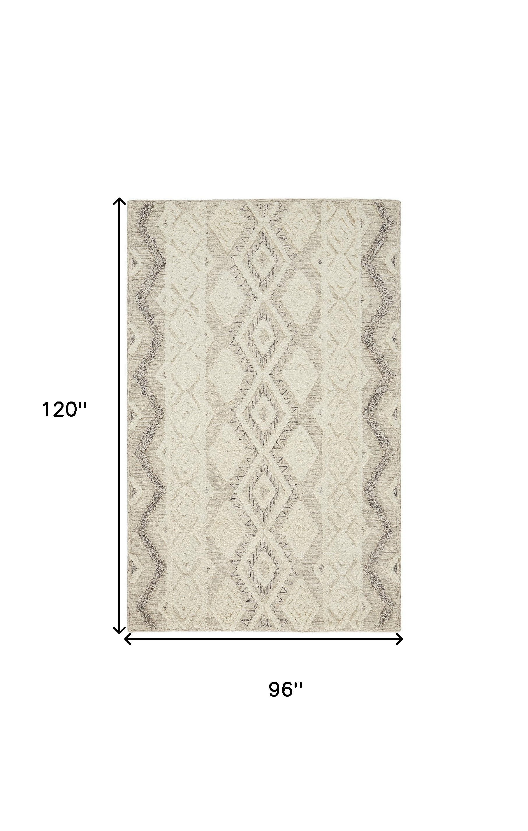 geometric hand tufted area rug, hand tufted area rug, tufted area rug, 8' X 10' gray ivory wool geometric, ivory wool geometric hand tufted |