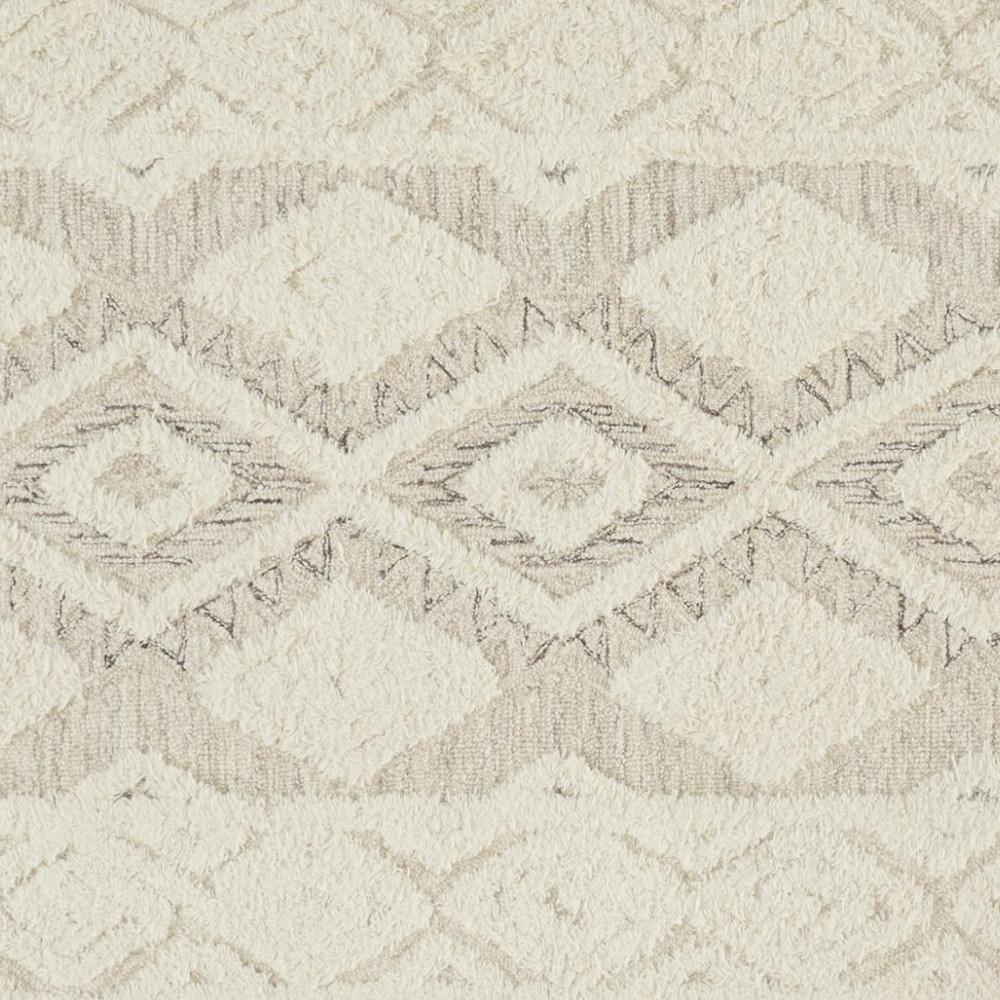 Add some artistry to your room with this 12' x 15' ivory taupe and gray wool geometric tufted handmade area rug. This rectangle shaped rug features a geometric design in ivory taupe and gray to give it visual interest. A classic shape marries with good looking design for your space Place this area rug against a hardwood or tile floor and it will enliven your living space with style and sophistication. 0.5" H x 144" W x 180" D