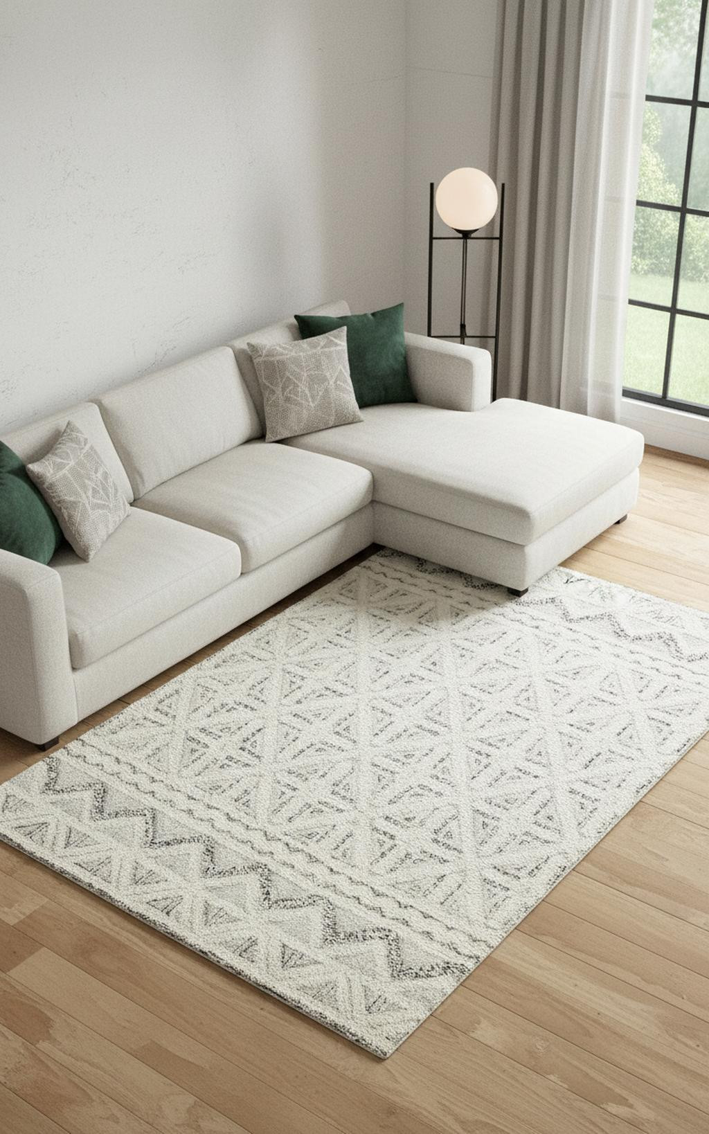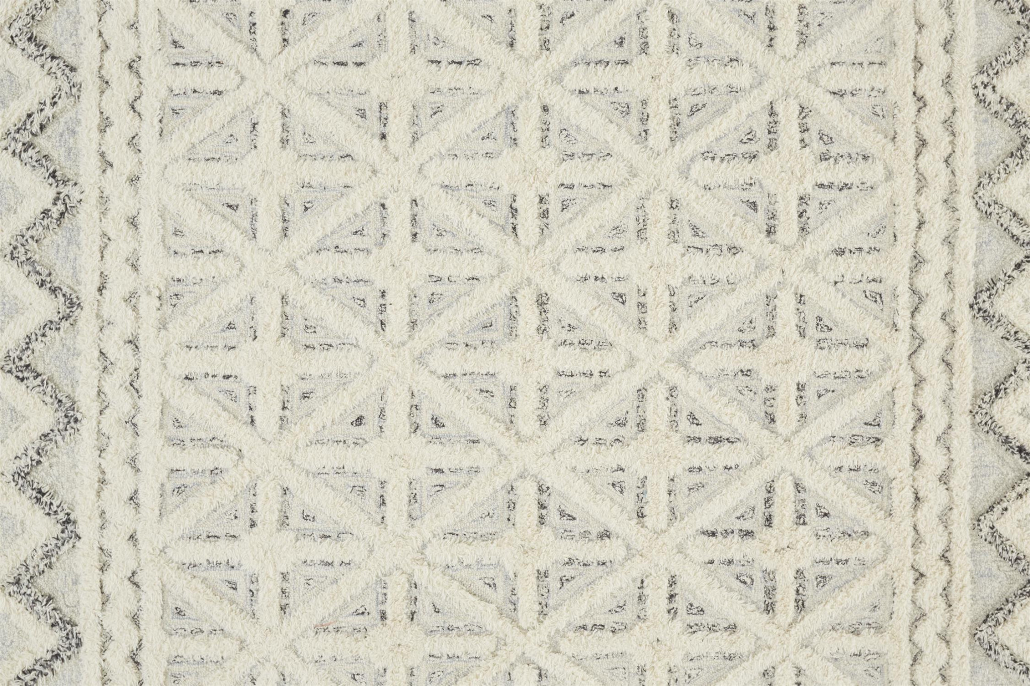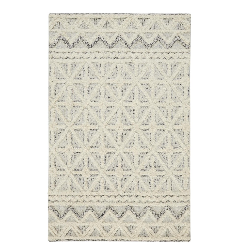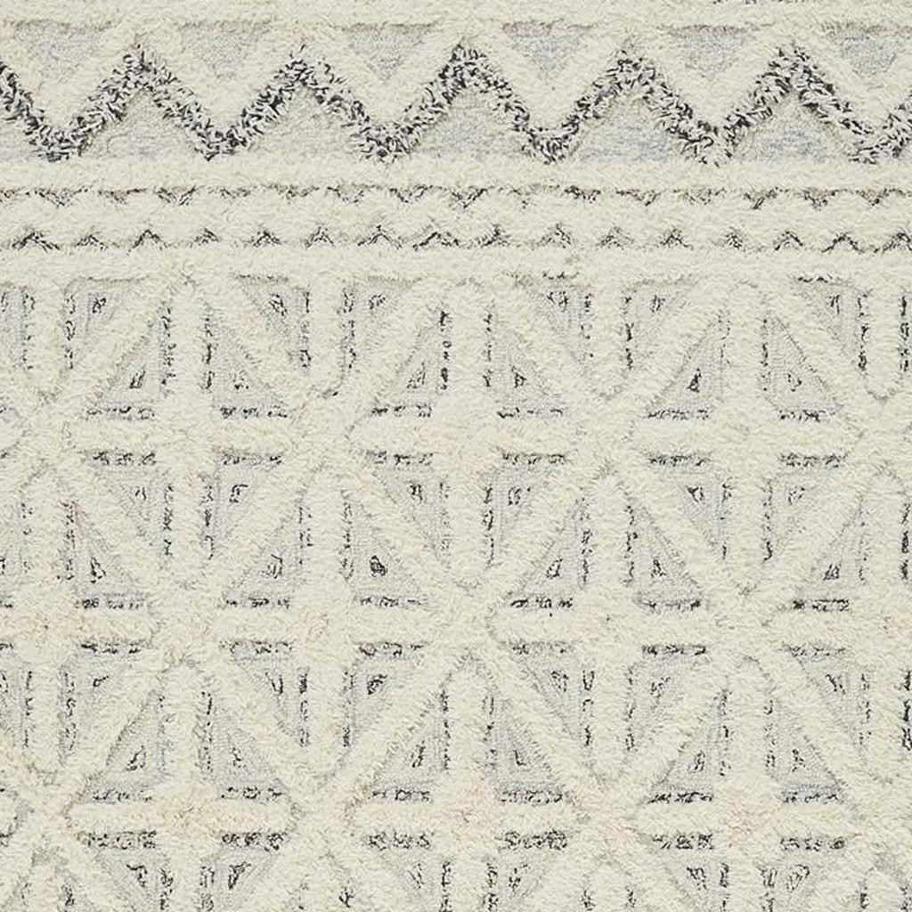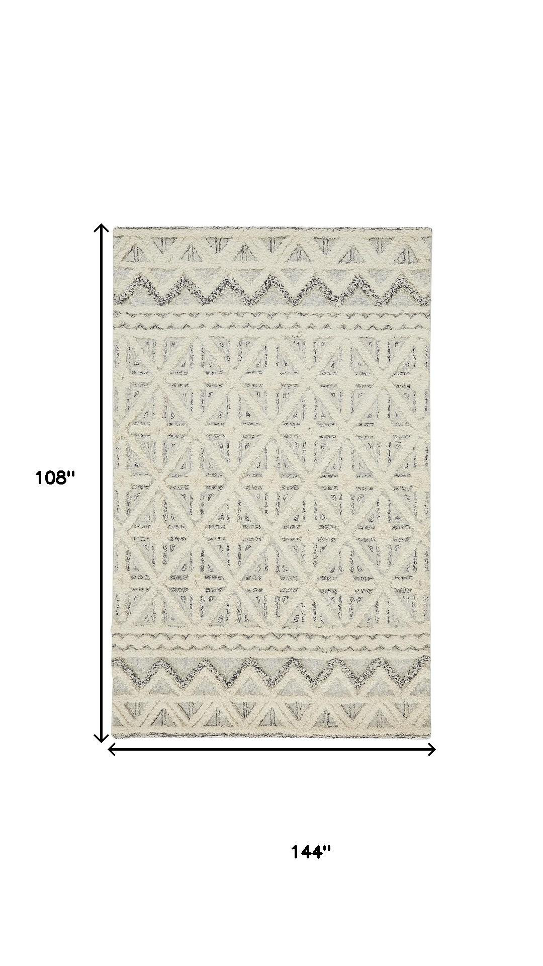 This 9' x 12' ivory and black wool geometric tufted handmade stain resistant area rug, is a great way to add warmth to a room. This rectangle shaped rug features a geometric design in ivory and black to give it visual interest. A classic shape marries with good looking design for your space Ideal for spaces with kids and pets, this rug is stain resistant to help repel stains and spilled liquids. Area Rugs help to give warmth and sense of home to your space. 0.5" H x 108" W x 144" D