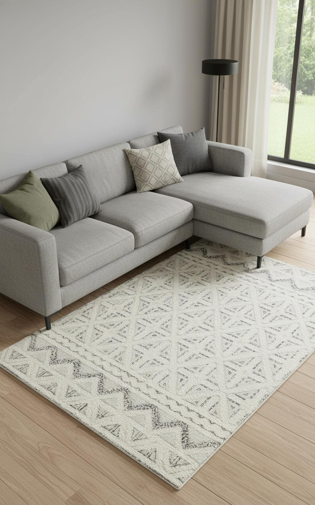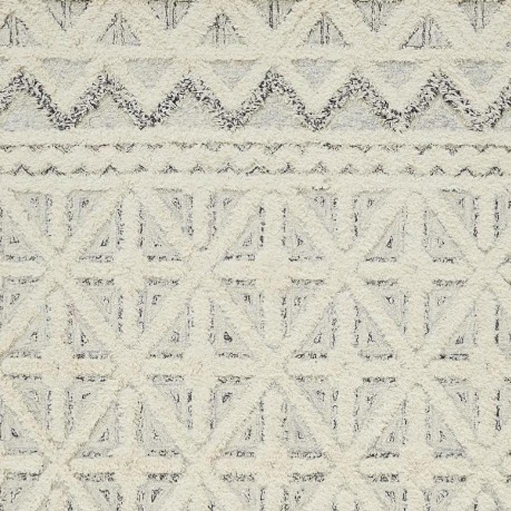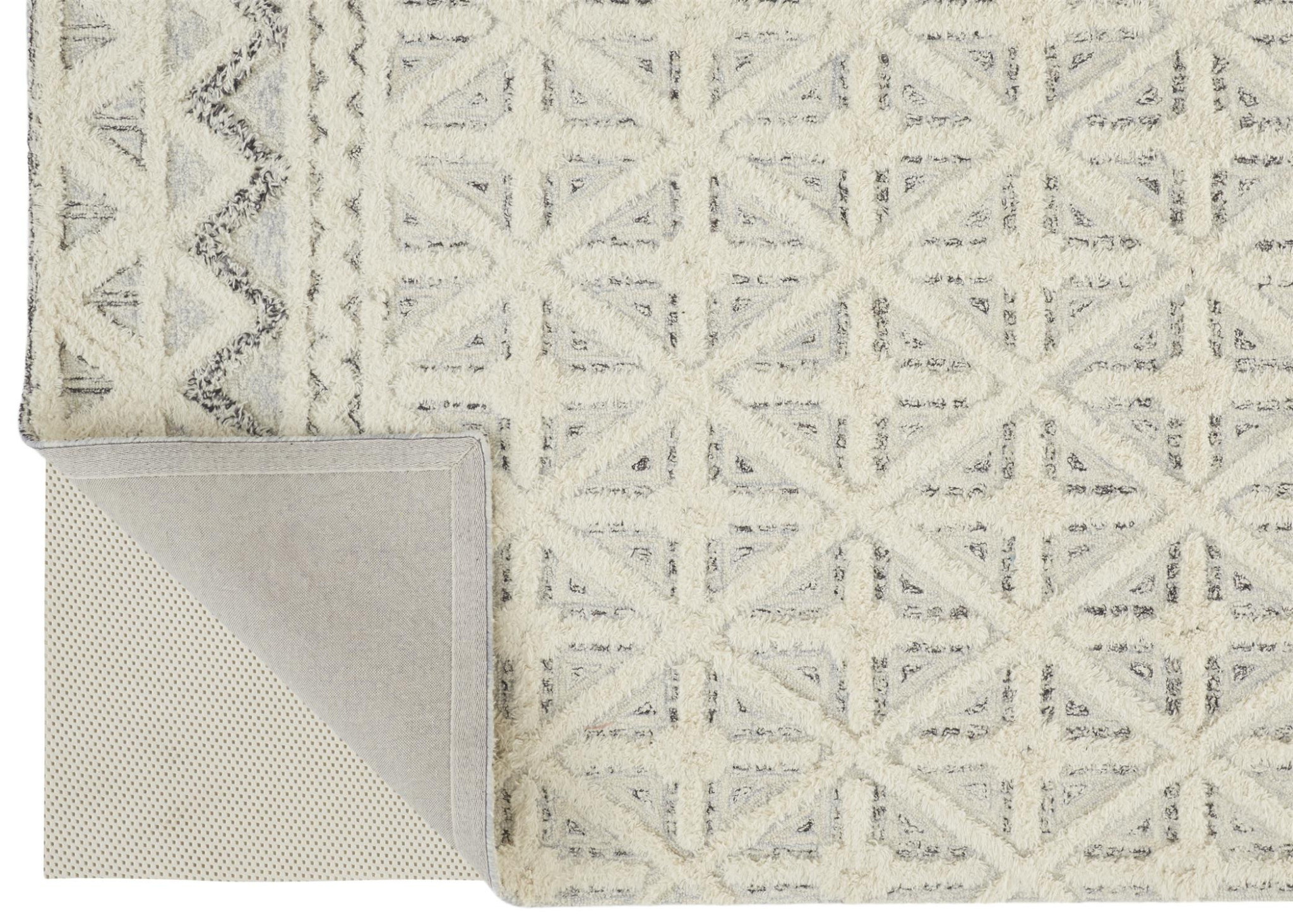 Set an inviting tone in your space with this 10' x 14' ivory and black wool geometric tufted handmade stain resistant area rug. This rectangle shaped rug features a geometric design in ivory and black to give it visual interest. A classic shape marries with good looking design for your space Ideal for spaces with kids and pets, this rug is stain resistant to help repel stains and spilled liquids. Place this area rug against a hardwood or tile floor and it will enliven your living space with style and sophistication. 0.5" H x 120" W x 168" D