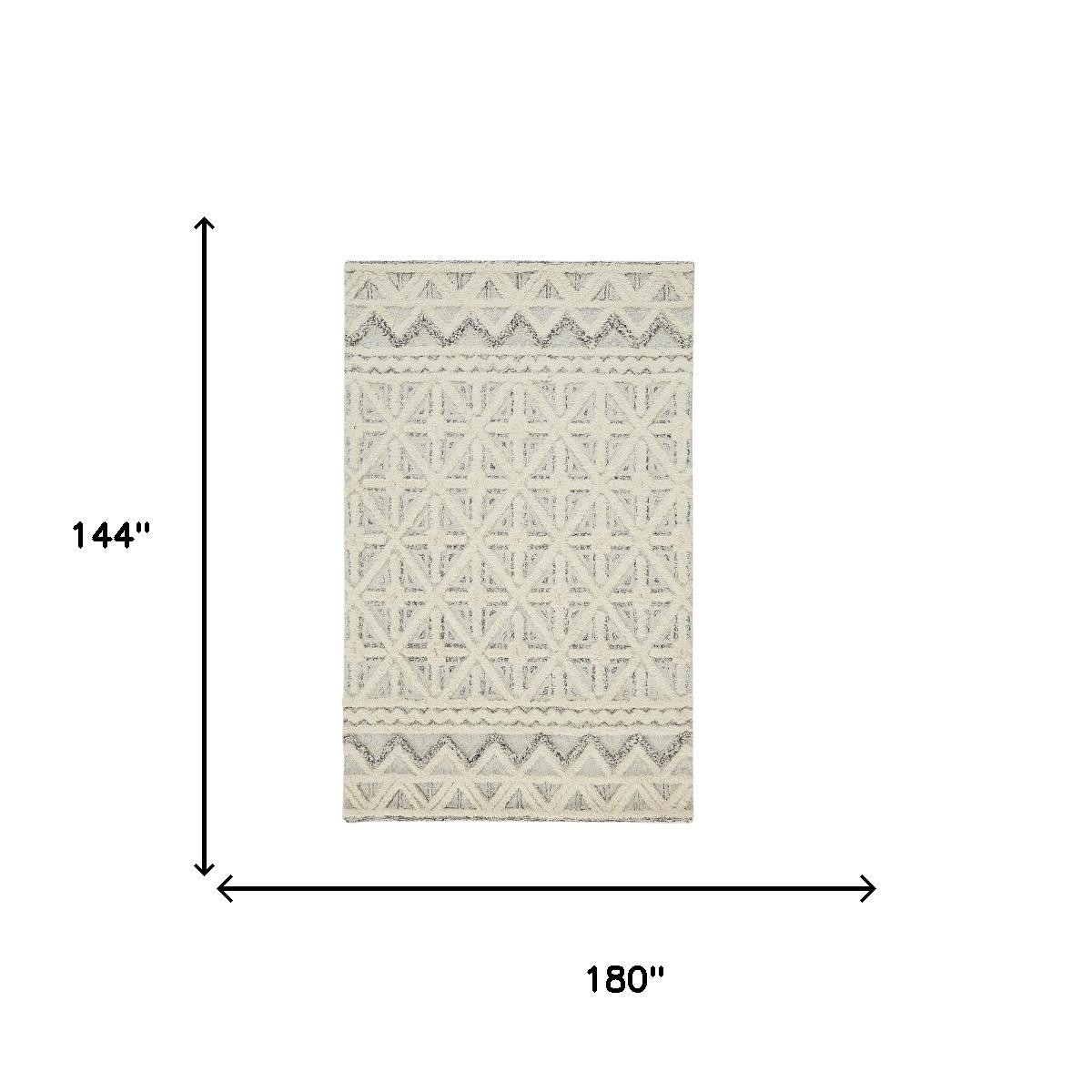 Add great coloration and comfortable texture to your space with this 12' x 15' ivory and black wool geometric tufted handmade area rug. This rectangle shaped rug features a geometric design in ivory and black to give it visual interest. A classic shape marries with good looking design for your space Place this area rug against a hardwood or tile floor and it will enliven your living space with style and sophistication. 0.5" H x 144" W x 180" D