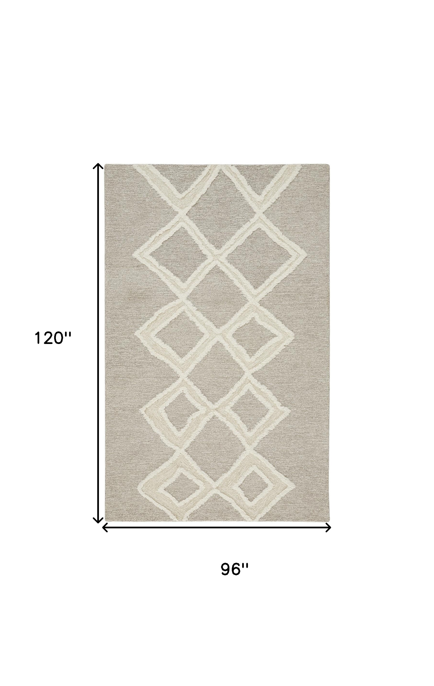 Add some artistry to your room with this 8' x 10' gray and ivory wool geometric tufted handmade stain resistant area rug. This rectangle shaped rug features a geometric design in gray and ivory to give it visual interest. A classic shape marries with good looking design for your space Ideal for spaces with kids and pets, this rug is stain resistant to help repel stains and spilled liquids. Place this area rug against a hardwood or tile floor and it will enliven your living space with style and sophistication. 0.5" H x 96" W x 120" D