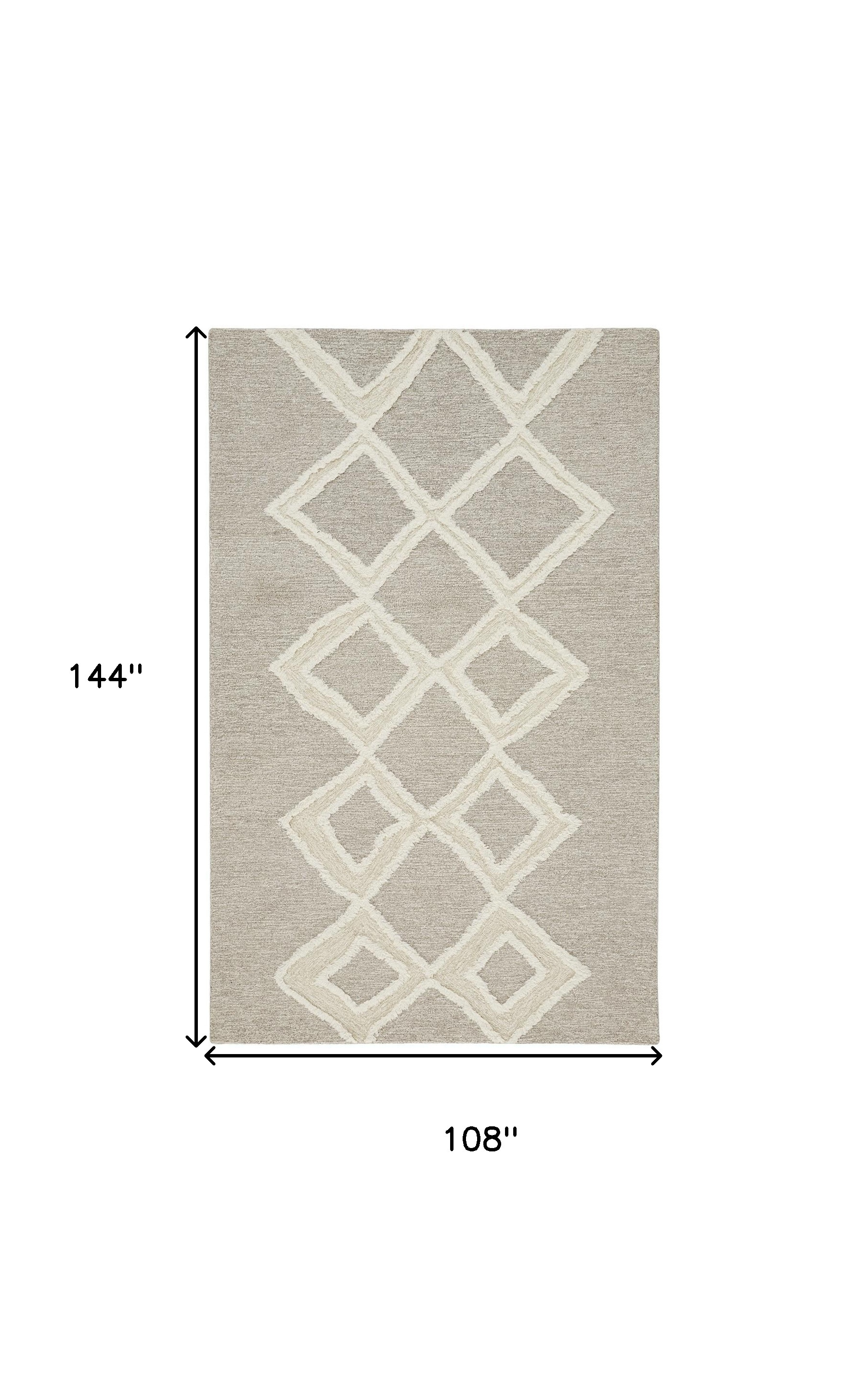 Add some artistry to your room with this 9' x 12' gray and ivory wool geometric tufted handmade stain resistant area rug. This rectangle shaped rug features a geometric design in gray and ivory to give it visual interest. A classic shape marries with good looking design for your space Ideal for spaces with kids and pets, this rug is stain resistant to help repel stains and spilled liquids. Place this area rug against a hardwood or tile floor and it will enliven your living space with style and sophistication. 0.5" H x 108" W x 144" D