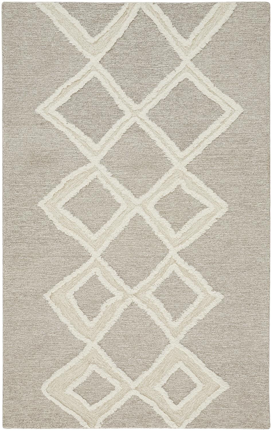 This 12' x 15' gray and ivory wool geometric tufted handmade area rug, is a great way to add warmth to a room. This rectangle shaped rug features a geometric design in gray and ivory to give it visual interest. A classic shape marries with good looking design for your space Area Rugs help to give warmth and sense of home to your space. 0.5" H x 144" W x 180" D