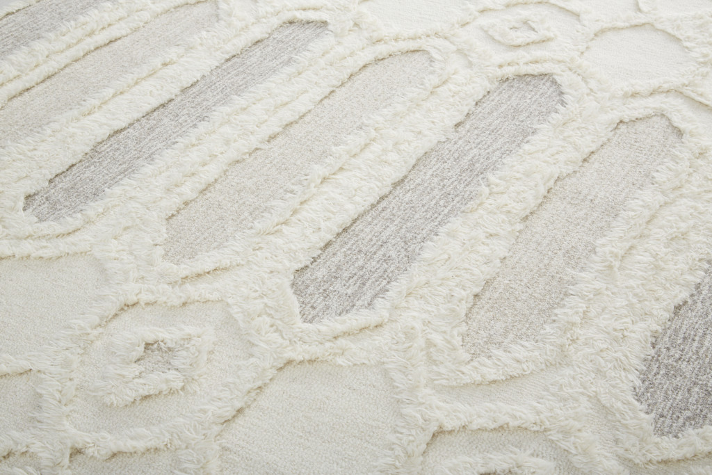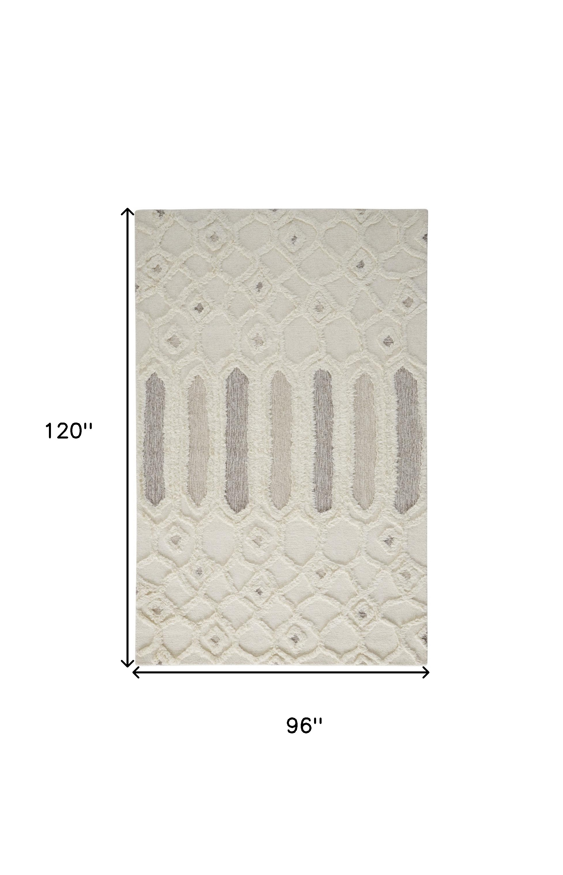8' X 10' Gray and Ivory Wool Geometric Hand Tufted Area Rug
