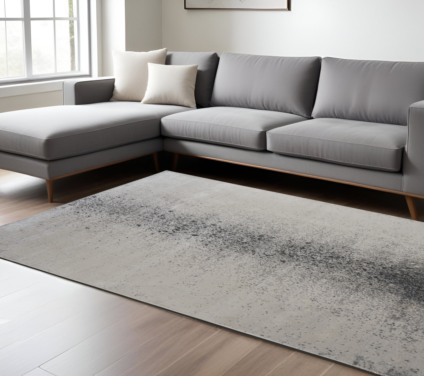 This 8-foot x 10-foot gray and ivory abstract power loom non skid area rug, is a great way to add warmth to a room. This rectangle shaped rug features a abstract design in gray and ivory to give it visual interest. A classic shape marries with good looking design for your space. 96-inch H x 120-inch W x 0.4-inch D