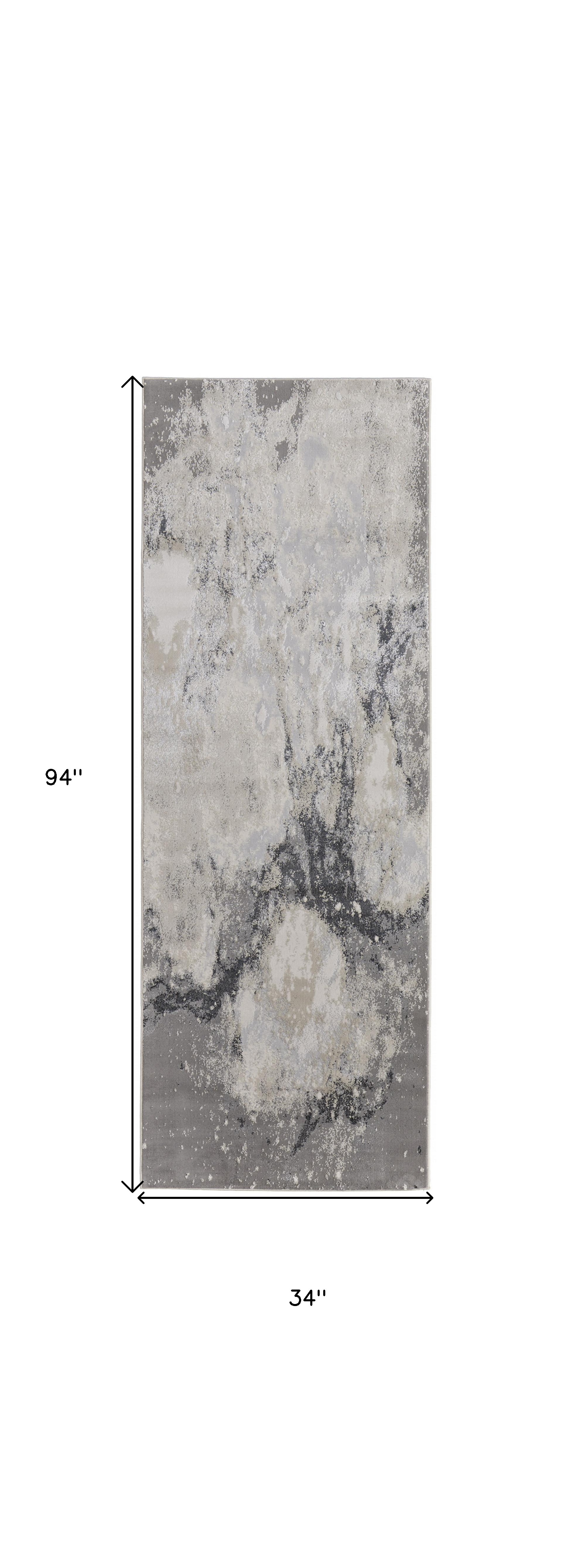 Add great coloration and comfortable texture to your space with this 8-foot ivory black and gray abstract runner rug. Built to last, this rug crafted from polyester fibers is known for its durability and long lasting appeal. Rugs are a great way to showcase your style, hide imperfections, warm your home and reduce noise. 34.00-inch h x 94.00-inch w x 0.40-inch d.